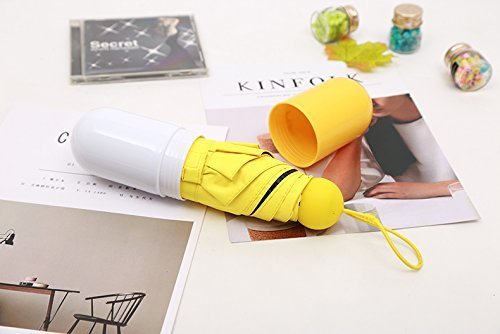 Description : You don't have to choose between huge, heavy, windproof umbrellas or a tiny umbrella that barely gives you any protection from the wind and the rain. This excellent umbrella is a perfect combination of portability, protection, and durability. The umbrella is only 7 inches / 18cm long when folded and weighs only 280 g including the waterproof case! UV Protection is done adding to a Rubber Coating Inside of the Umbrella which Makes it Look Premium and act as one. The Designer Capsule Travel Umbrella is One Fine Introduction by Dayalu Which Will Complete your Rainy Day Kit. Size : Small Care Instructions: Always open the umbrella pointing downwards, Lift the ribs slightly and slide the umbrella open. Quality: High Grade Materials Used : Fine PU | Nylon | Polyester |