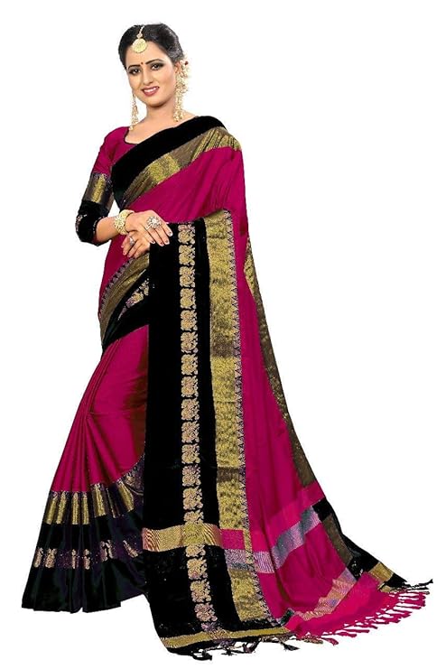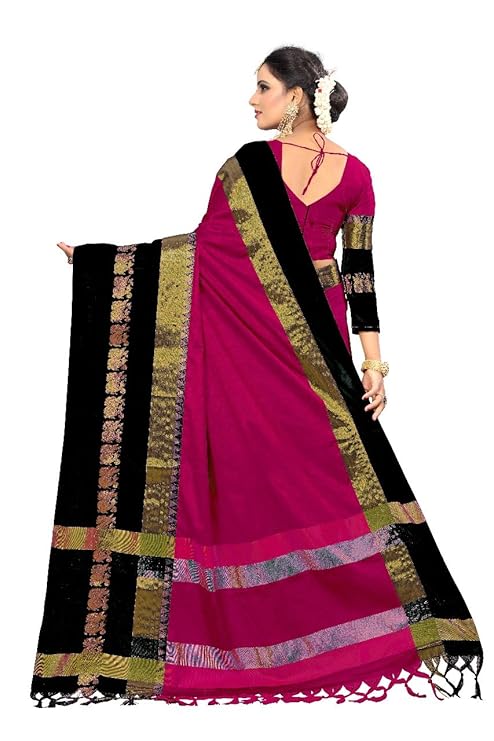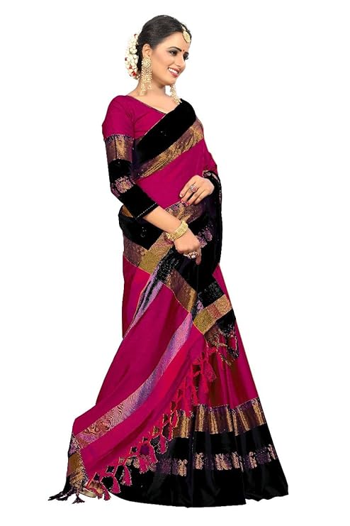 This Rich Looking Cotton Silk saree adorned with floral designs of Cotton Silk elegantly fills the pallu and the border.