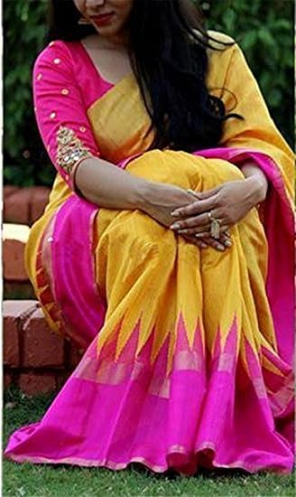 Material : cotton Saree, Blouses: cotton, Color : yellow