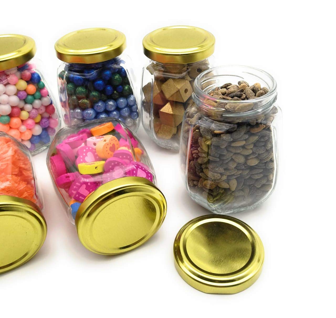 Ideal for storing food items such as honey, jams, pickles, chocolates etc. Great for gift packaging and look very attractive when filled with colourful food items!