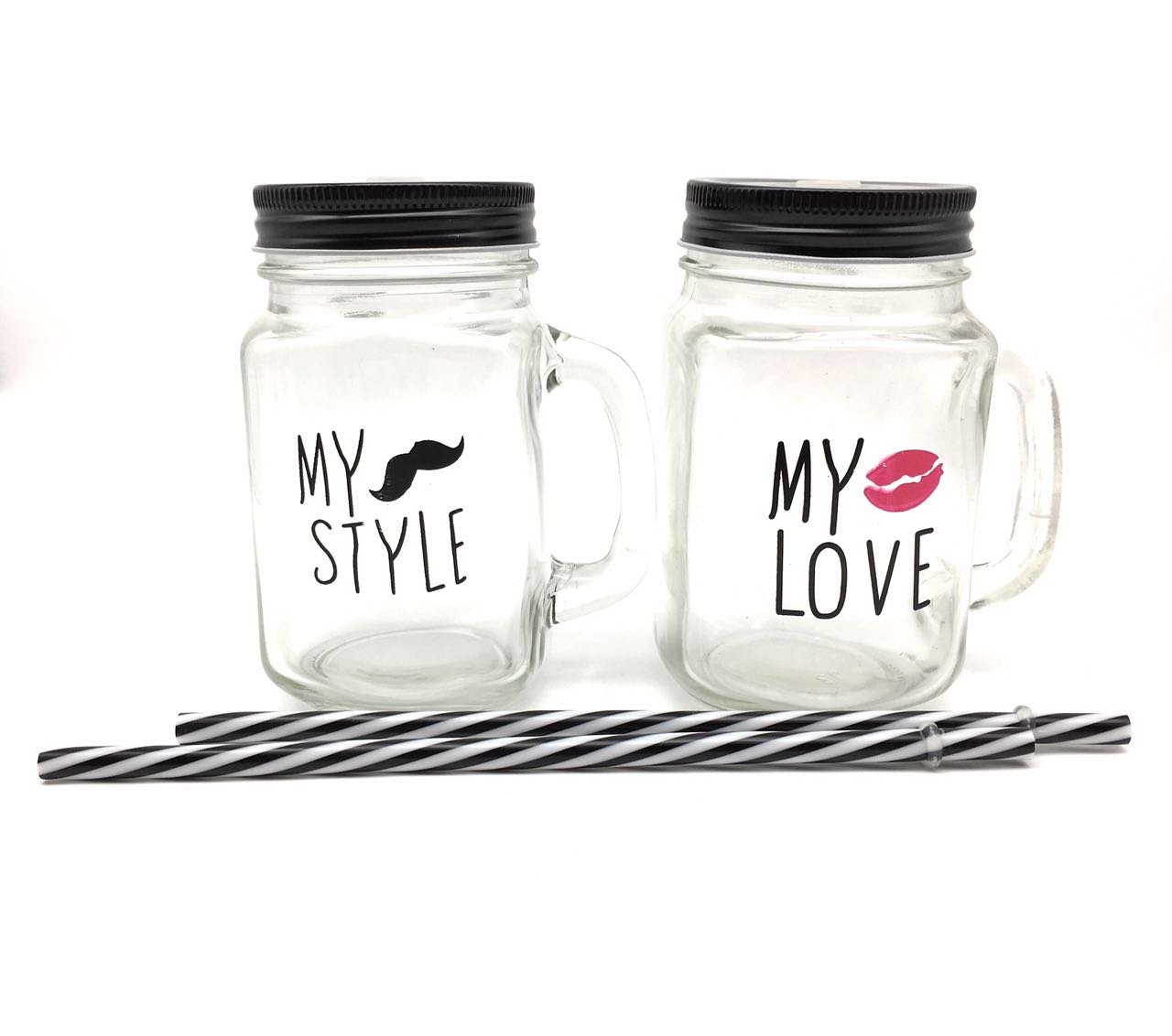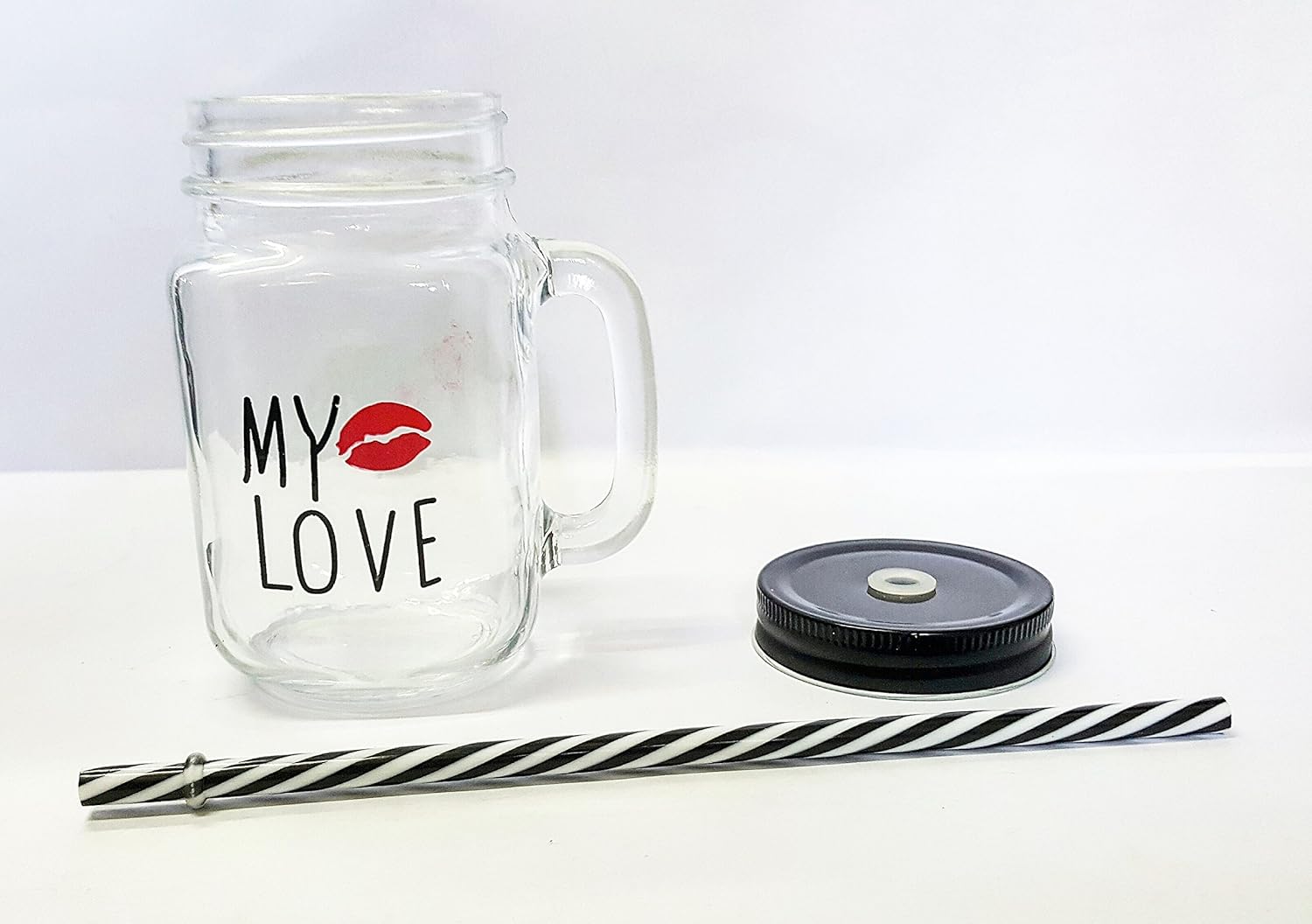 Satyam Kraft (Pack Of 2)My Style & My Love Mason Jar With Lid And Straw(500 Ml)
