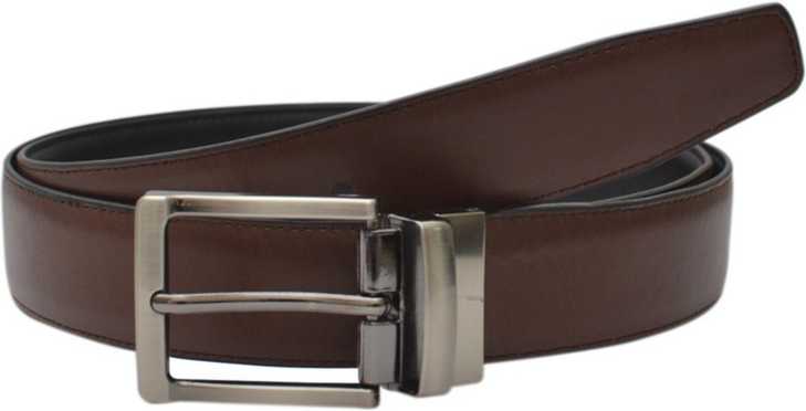 Our Men's leather belts comes with turning metal buckle, as its a reversible belt made of pure leather, When you need a Formal Black belt or casual brown belt for men or boys it is a good choice, you can change the belt color black to brown or brown to black by just rotating the buckle With help of turning buckle you can you can enjoy benefit of 2 belts in 1. It is also a perfect gift for your male friends and relatives like boyfriend, brother or father. Our genuine leather belt is useful for casual stylish jeans and formal pants. Its as good belt as any branded belt good looking and durable. Product specification Height - Width - 1.3 inches/35 mm fit to Sizes available - from 28 to 42 size. Please select your suitable size.if you are wearing jeans of 32 size buy belt 34 size. Avoid water and extreme heat.