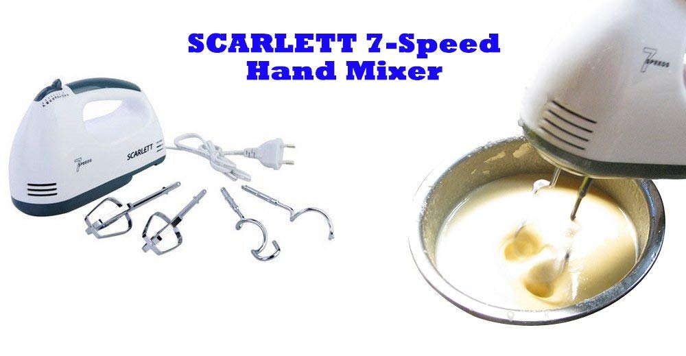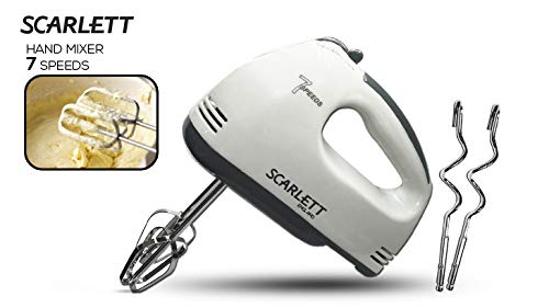 Scarlett 7-Speed Lightweight Hand Mixer with Chrome Beater + Dough Hook, White 180 Hand Blender (Multicolor)