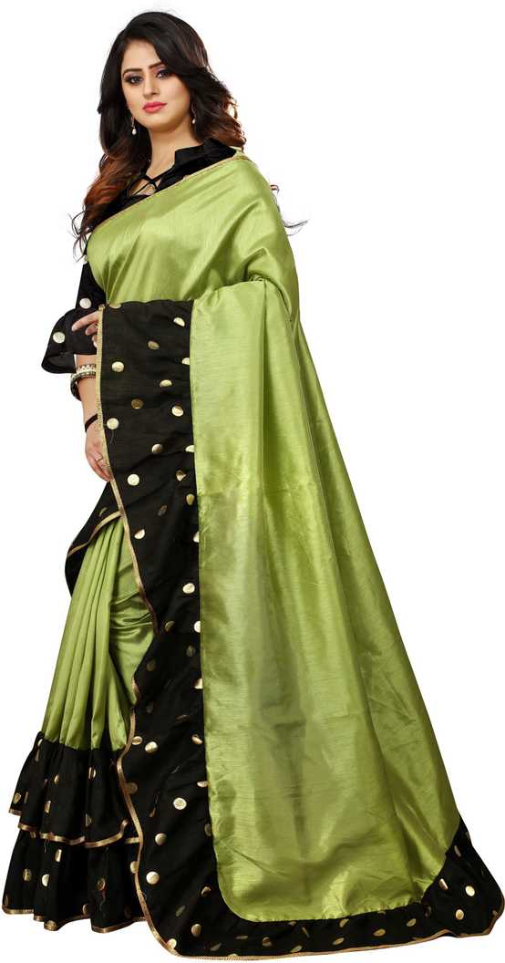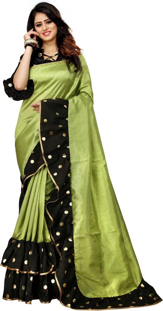 Green Black Foil Print Saree |
