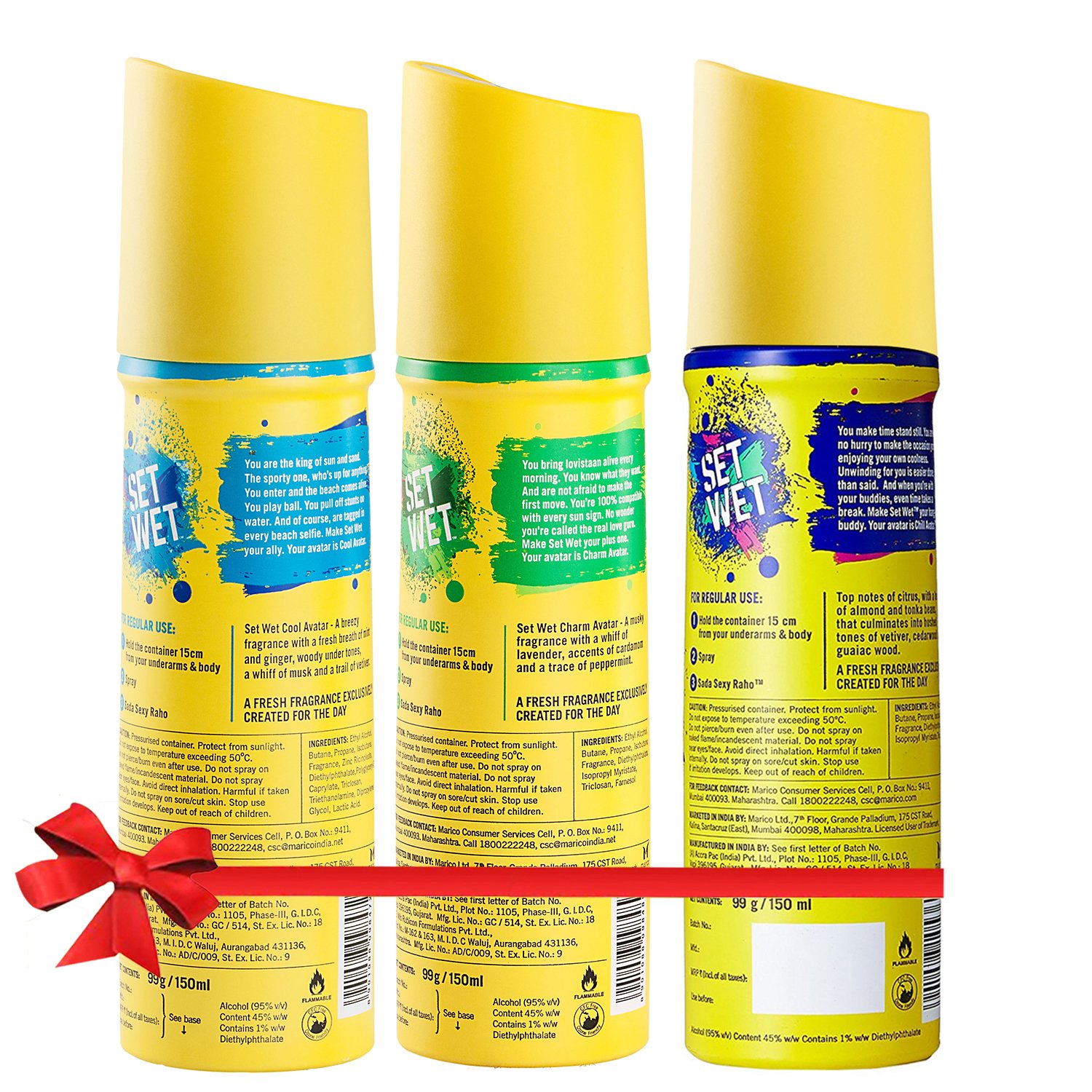 Set Wet Cool, Charm and Chill Avatar Deodorant Spray Perfume, 150ml (Pack of 3)