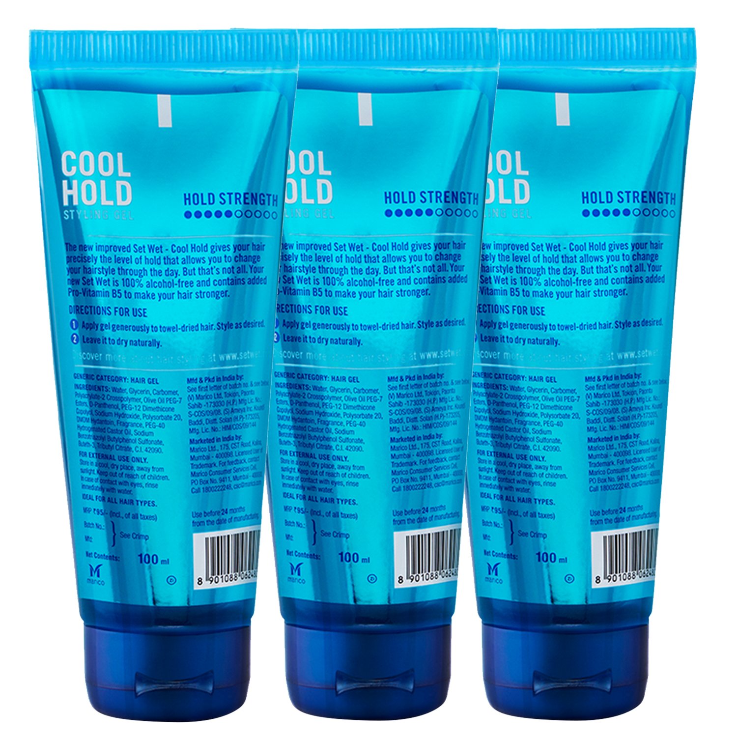 Set Wet gel is 100 percent alcohol free hair gel and contains added pro-vitamin b5 water soluble vitamin that moisturizes the hair, keeping it soft, strong and conditioned