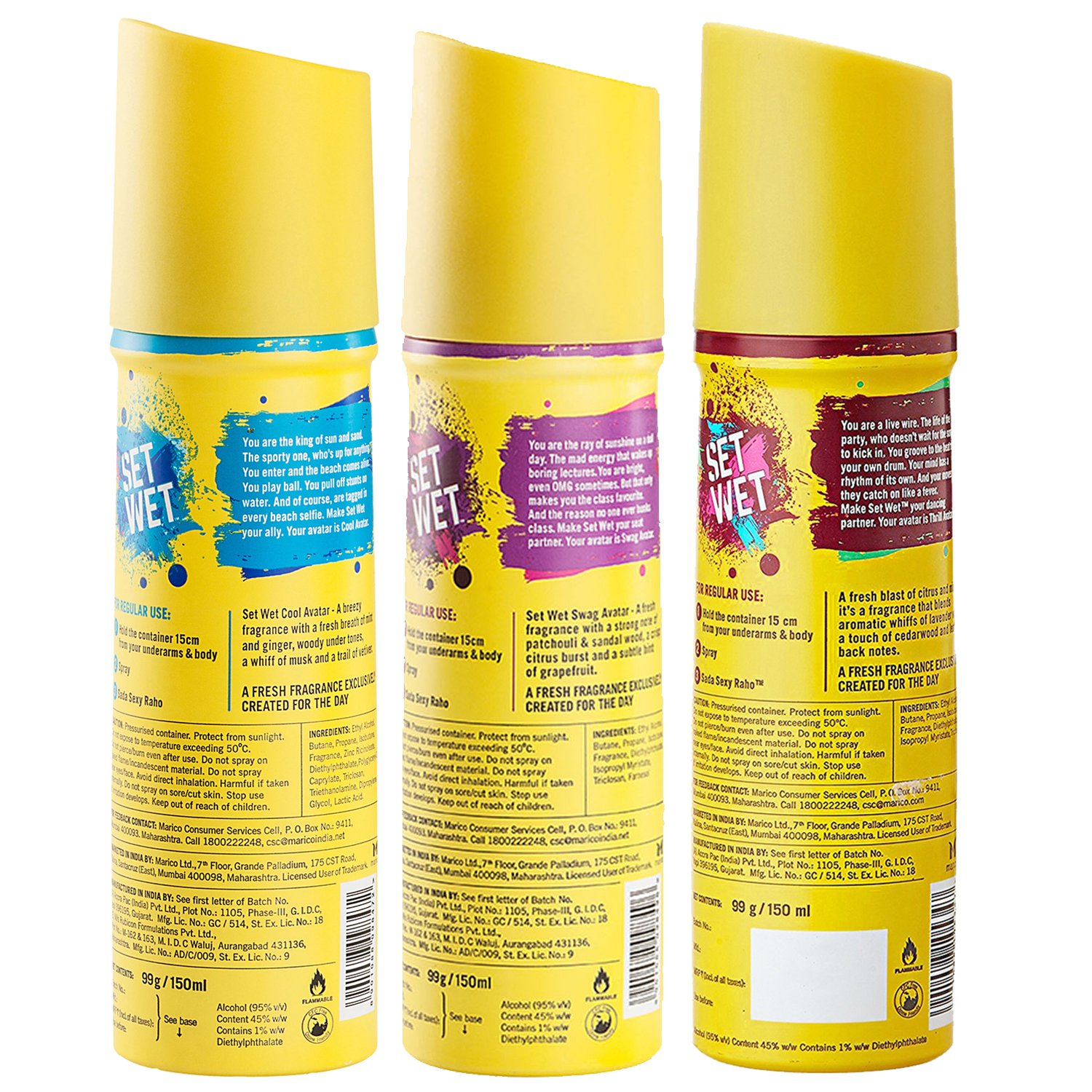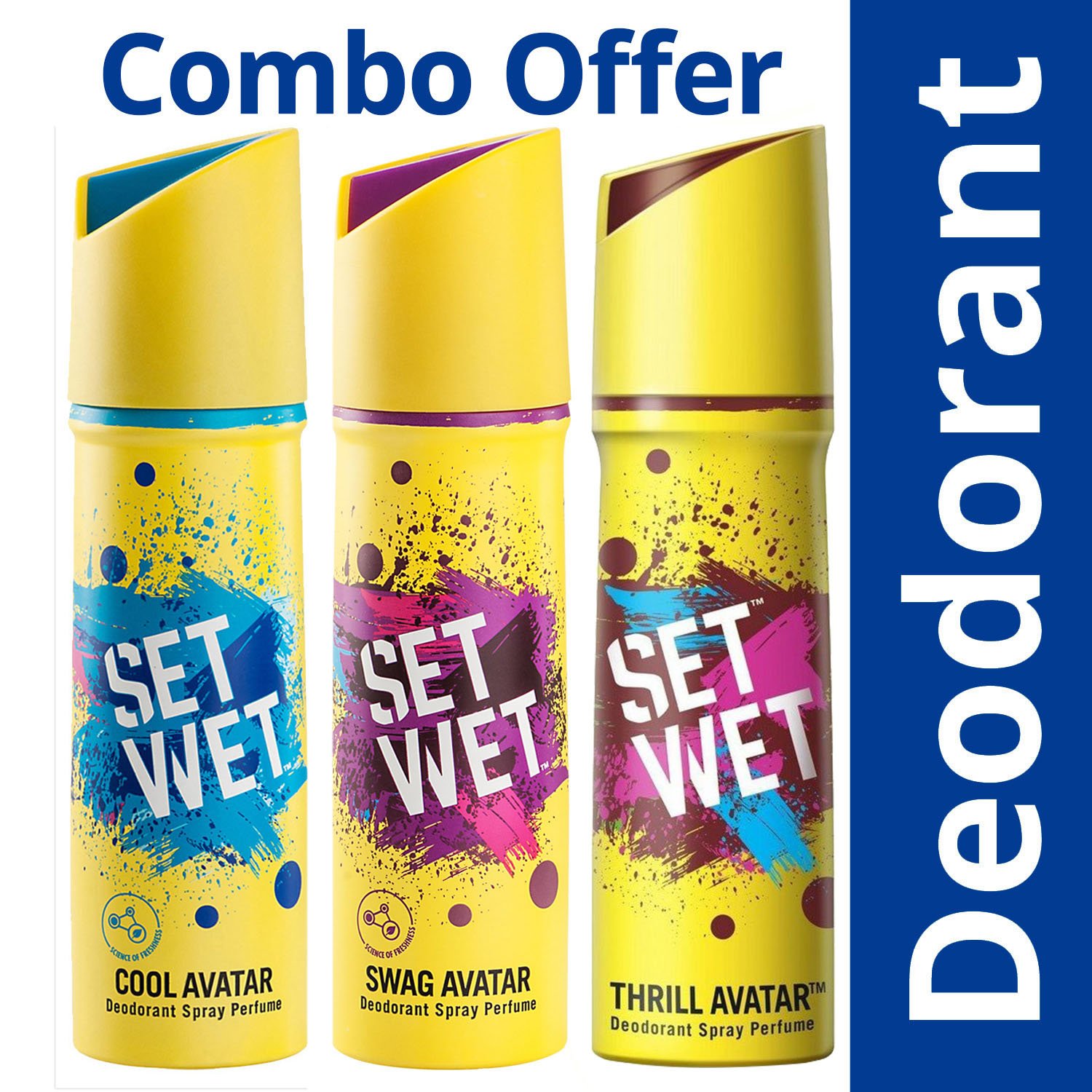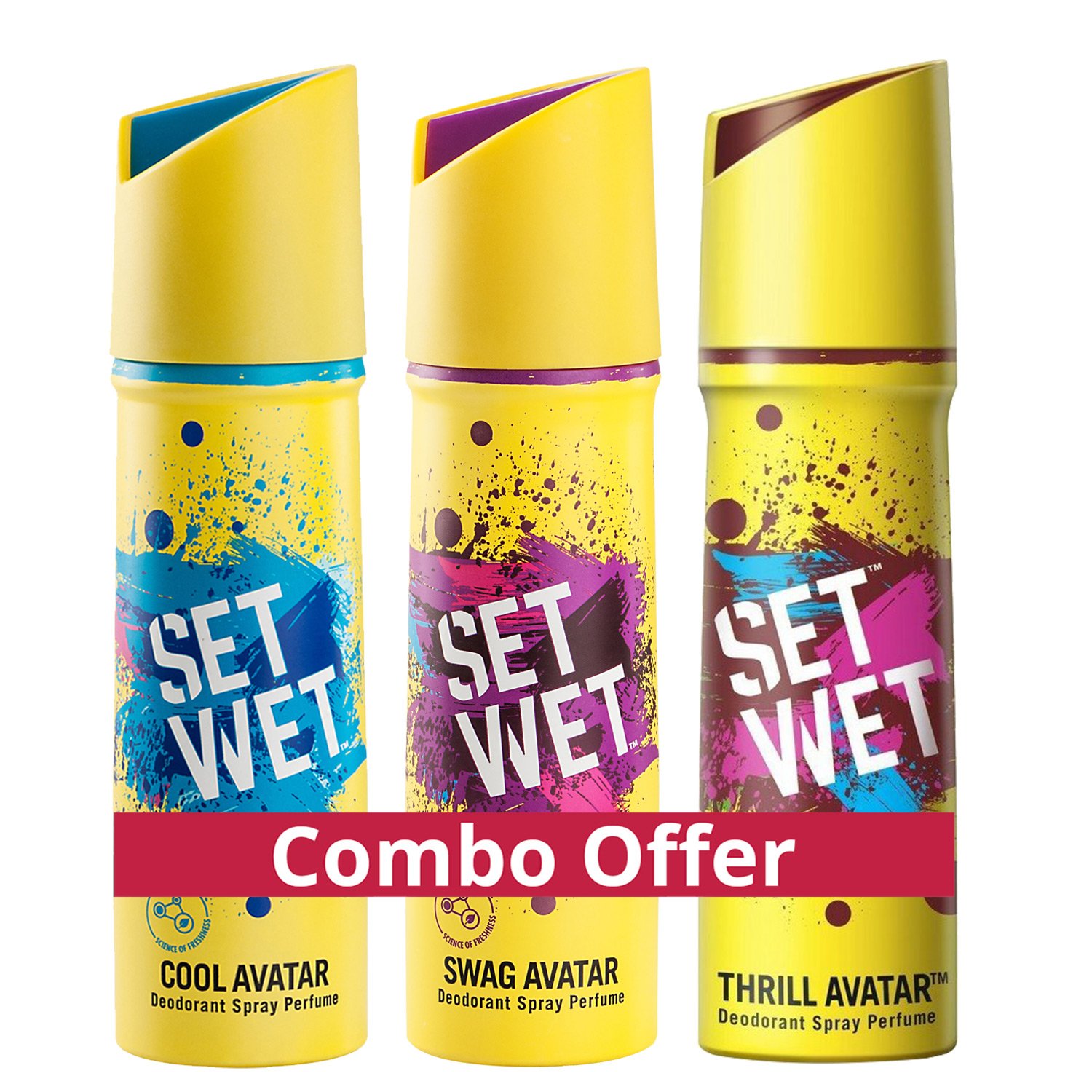 Set Wet Deodorant Spray Perfume, 150ml (Cool, Swag and Thrill Avatar, Pack of 3)