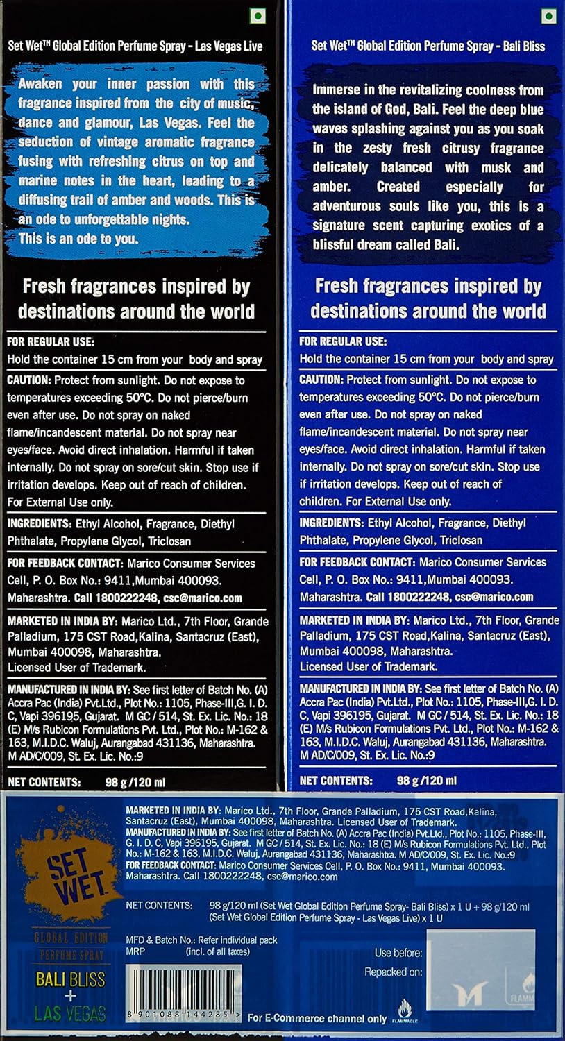 Set Wet Global Edition Bali Bliss with Las Vegas Live Perfume Spray, 120ml (Pack of 2)