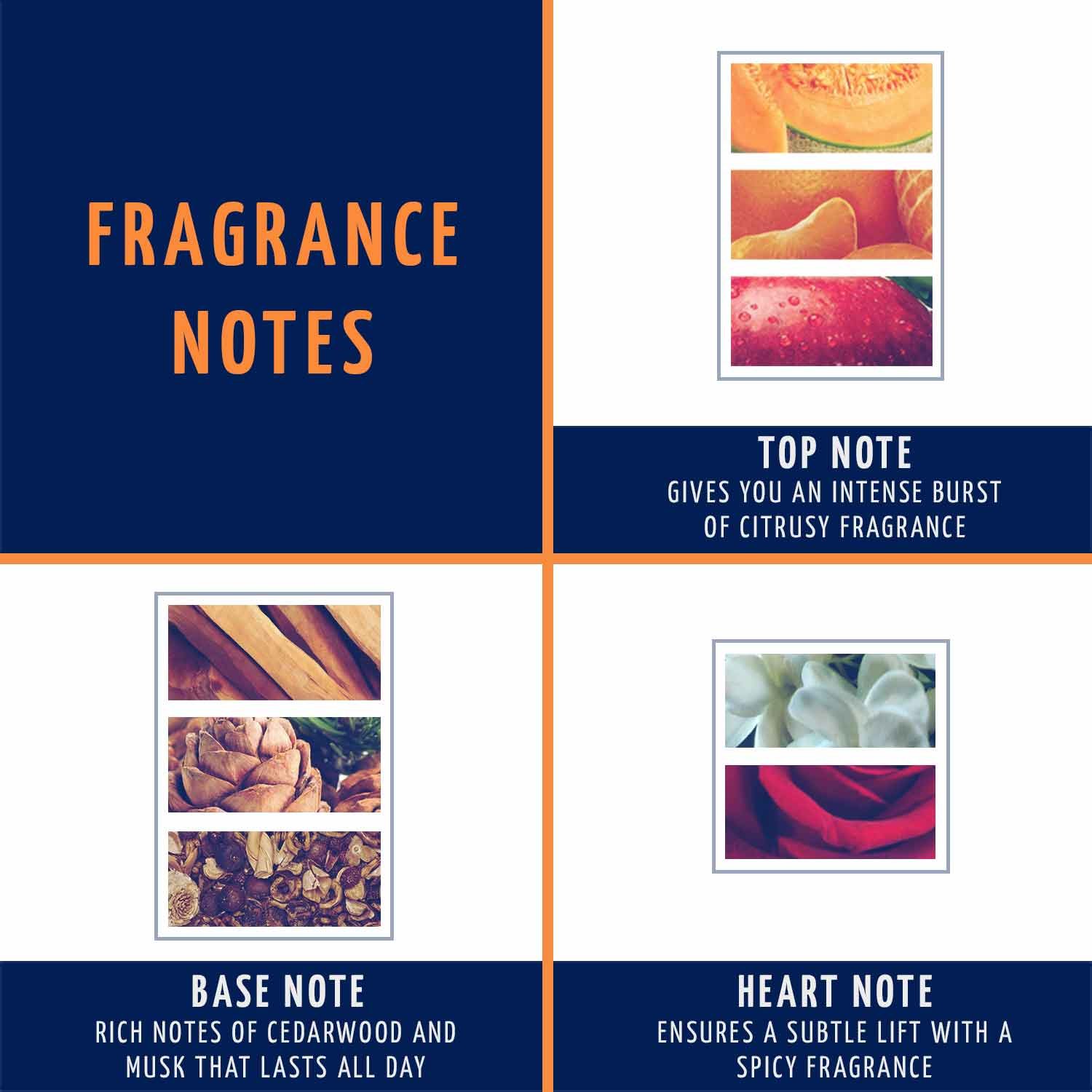 This mens perfume spray has a base note of musk and cedarwood that gives you a subtle edge throughout the day, and helps you hide the body odour