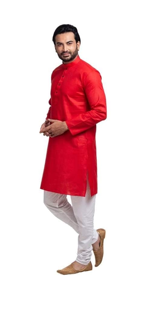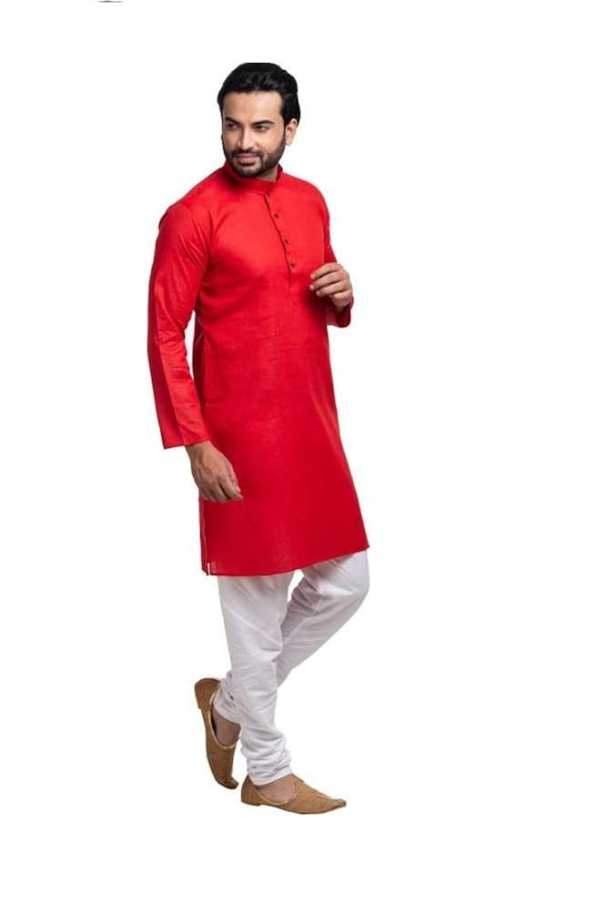 Look your ethnic best wearing this solid coloured kurta for men from the fashion house of Shahzada. Made from Cotton, this regular-fit kurta comprises a full-sleeved kurta to complete your look. Team this outfit with embroidered mojris & Pyjama and rock the party that you attend. |