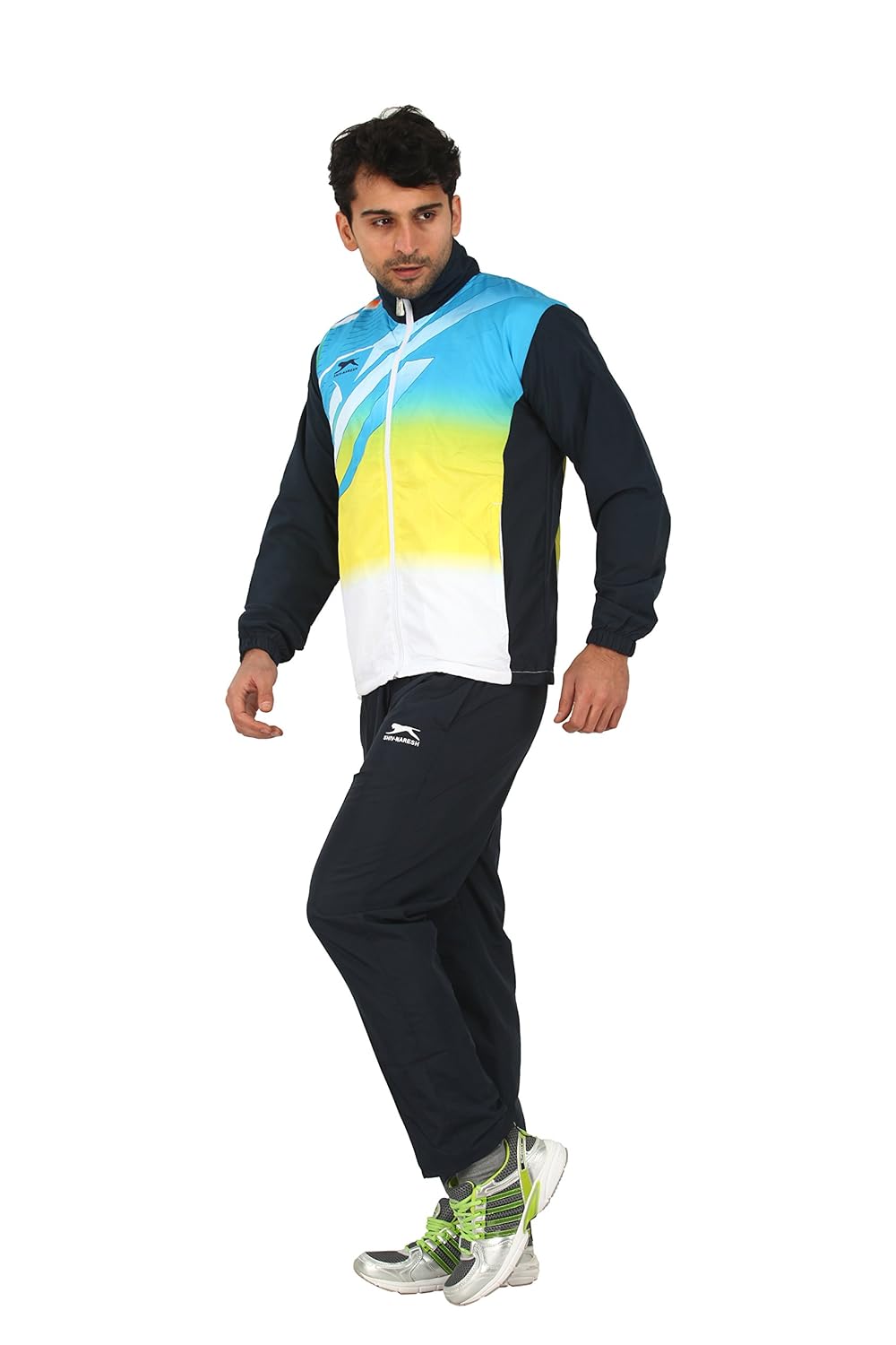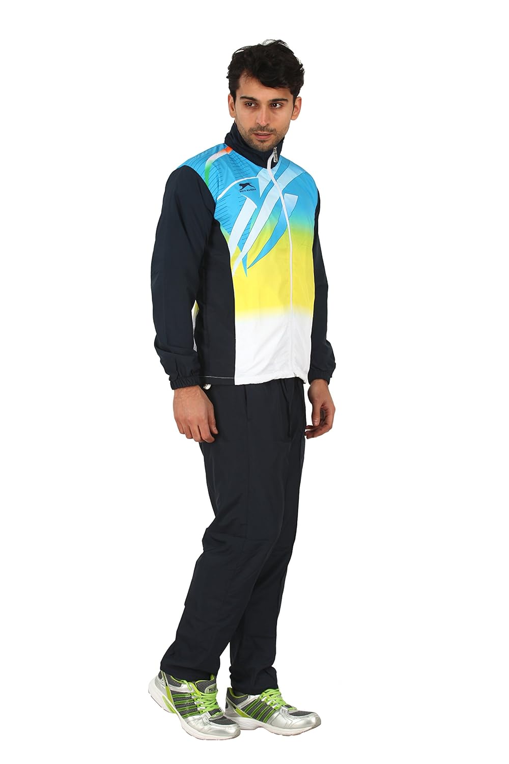 Take your winter workout performance to the next level with the sweat-wicking support of this blue polyester tracksuit from Shiv Naresh. The colourblocked jacket with Commonwealth Games-inspired design embodies pure athletic inspiration, while the zippered front allows customised ventilation. Pair it with sports shoes. |