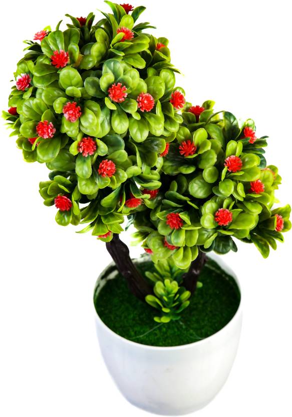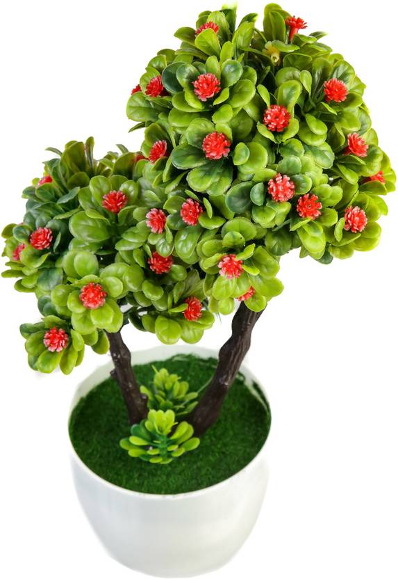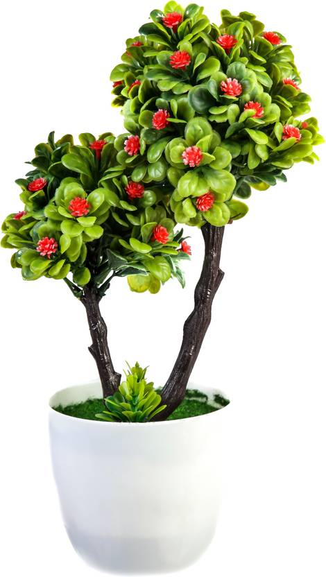 ShivExim Bonsai Wild Artificial Plant with Pot (27 cm, Green, Red)