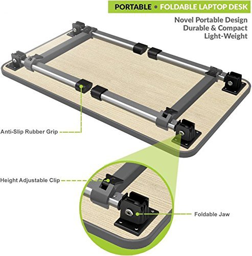Foldable in desk and legs, small in volume, easy to take Size: 520 x 300 x 12 (in mm), Height: 235 - 315 mm (adjustable)
