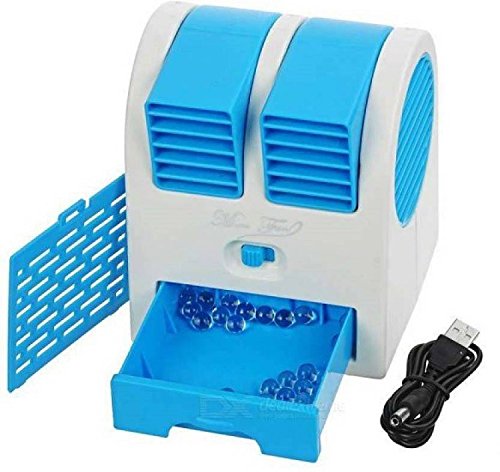 - You can add ice or ice water into the storage box to provide freezing air. Input some scents, then it also could make air more fresh. Mini steam fan, mini steam conditioning, theft USB port, 2-door type wind can blow independent help you adjust the wind direction with wider fan angle, fan larger space than the fan with 1 door wind, compact size, safety for the user.