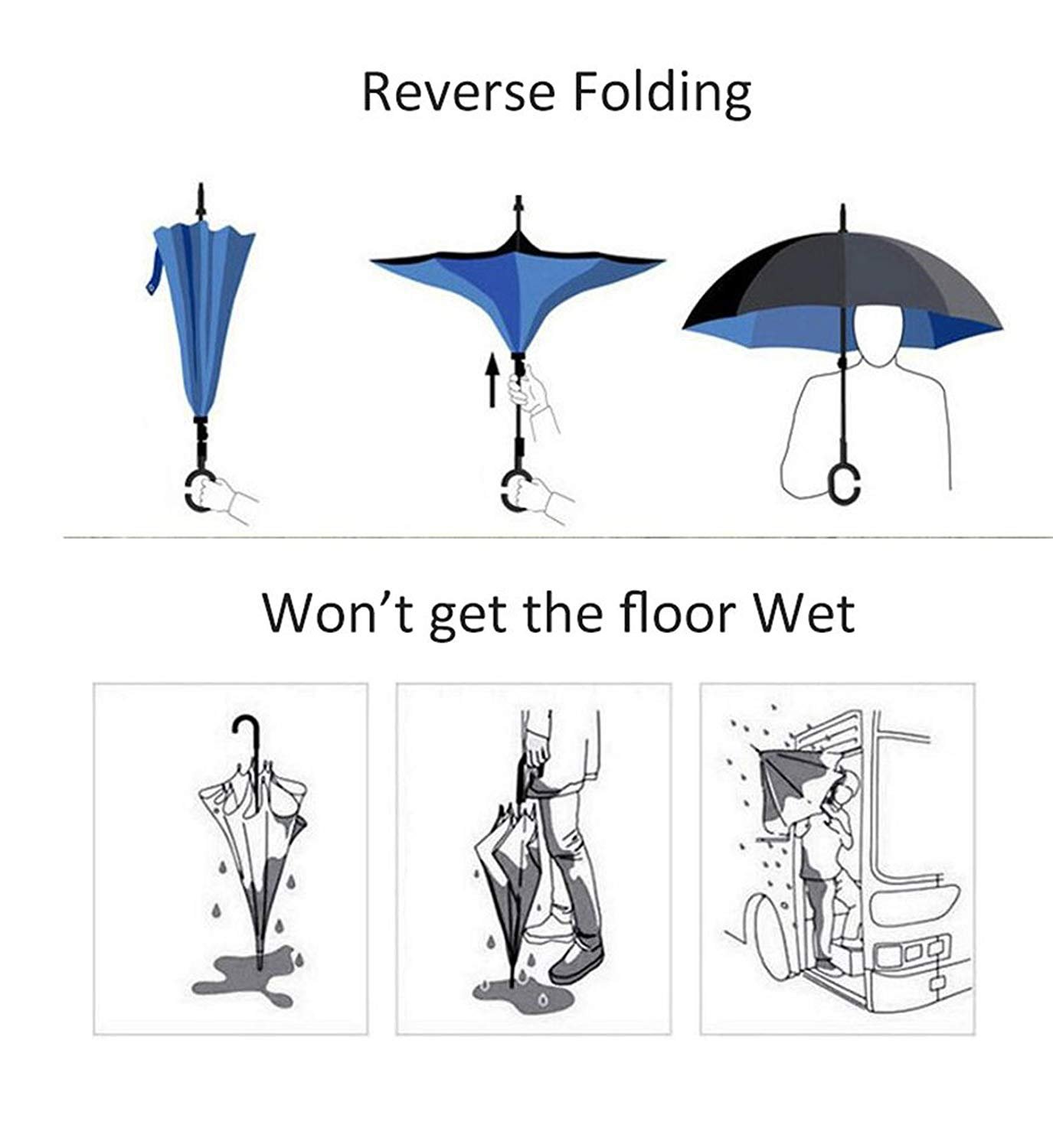 The latest reverse design - our beautiful windbreaker is a reverse mechanism that allows you to close the umbrella from the inside out when you open the door or visit the lobby without dripping rain. This real model prevents the car or floor from getting wet, keeping it dry and clean.