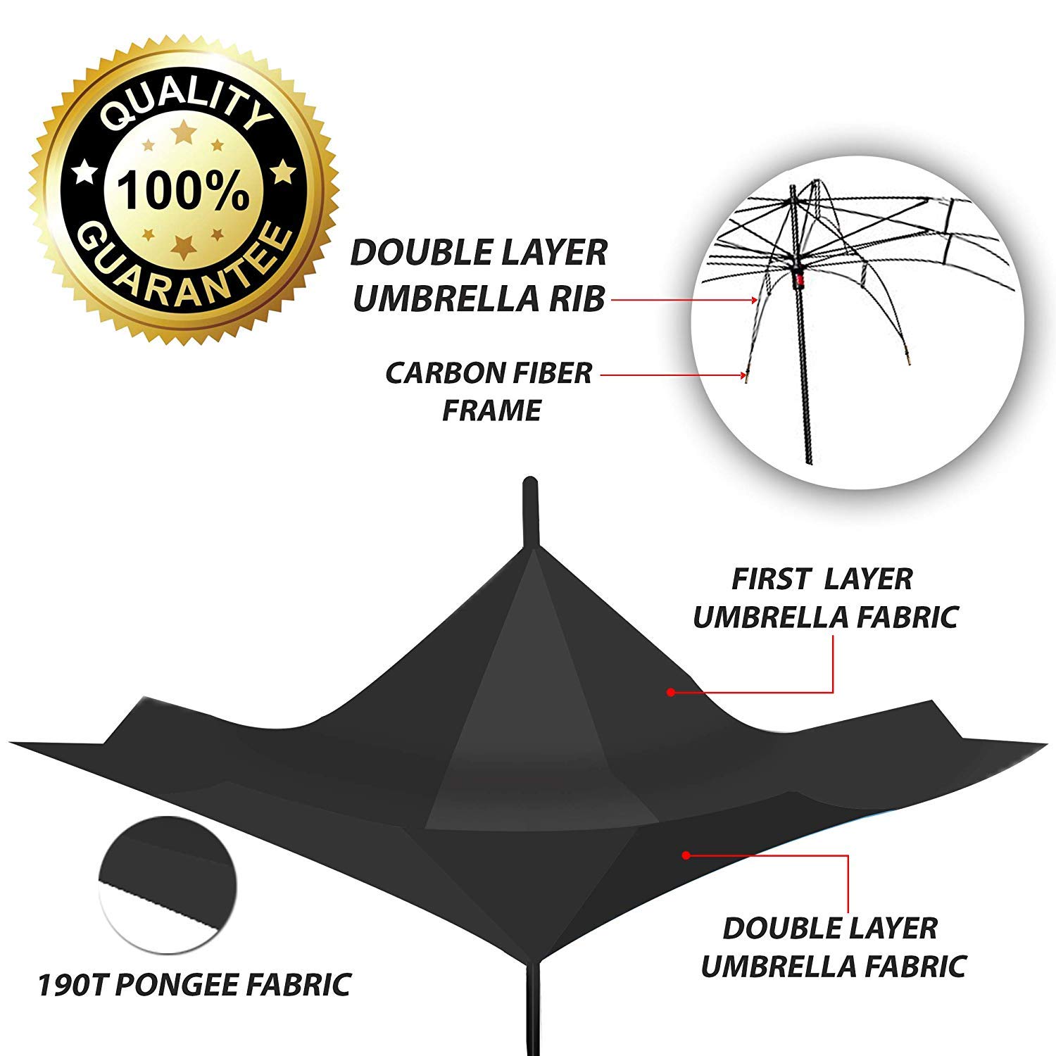 Shoppozone : Have you ever got into troubles in rainy days? 1. For mothers, how to hold an umbrella when having a baby in arms? 2. For passengers, how to avoid making others wet when you jump on a crowded bus or subway with an umbrella? 3. For drivers, how to prevent the umbrella from getting your car seats wet when you get in? 4. For businessmen, how to make a phone call when you lift a briefcase? Solve this problem with Inverted Design Umbrella Now !! Multi types of the color pattern for your choosing. you absolutely could find your favorite inverted umbrella Breathable Double Layer Design The umbrella canopy made of 201T double layers high-density water repellent pongee cloth fabric, windproof, waterproof and UV protection double layer canopy with sturdy reverse ribs make this inverted umbrella very strong. more windproof than traditional umbrella. the aerodynamic design helps umbrella finds the most comfortable position in the wind which makes it exceptionally pleasant to use, even in strong gales. If the canopy flips, it can be rectified at the push of a button. Stand Up on Its Own Amazing self-standing ability allows you to place it on flat ground, the 8 umbrella beads of the frame are transformed into eight legs upon contracting the umbrella when close . saving much space than traditional rain umbrella. Reverse folding design concept. fold the top "wet" layer into the under "dry" layer when you step into your car or store or wherever, which prevents water from dripping, keeping floors and cars dry. |