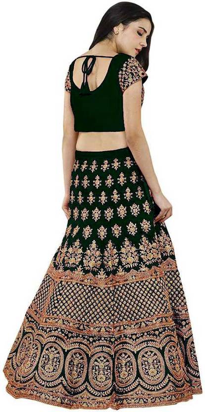 Shree Impex Embroidered Semi Stitched Lehenga Choli (Dark Green)