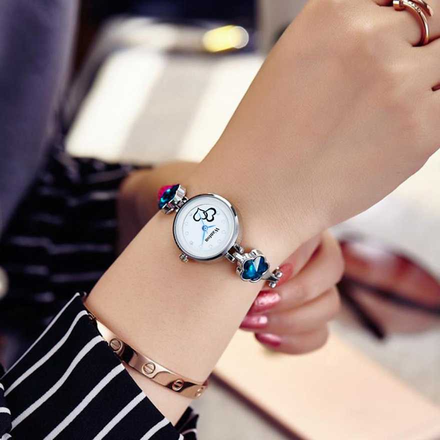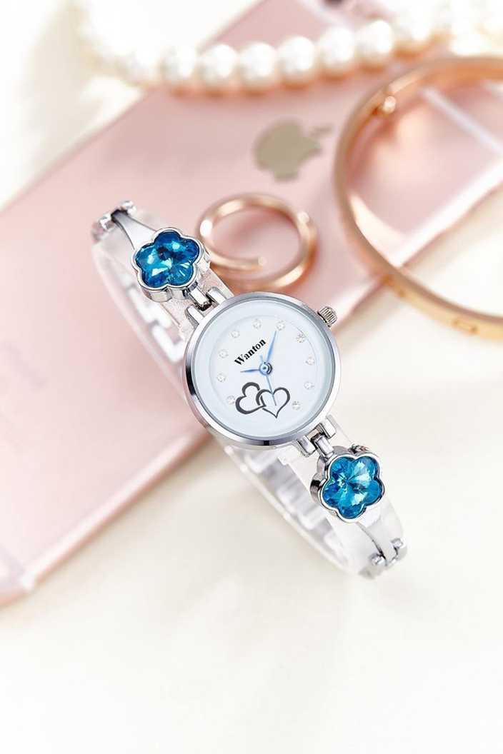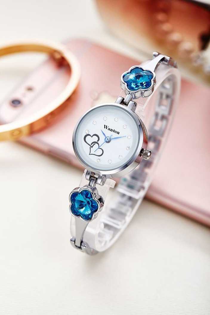 silver Ladies skyblue Crystal Diamond Watch Women Casual Analog New Rhinestone Silver Gold Saat Love Heart Lady Bracelet |