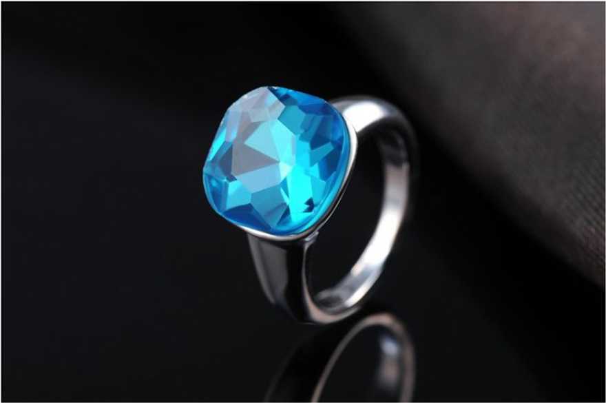Model Name: Silver Shoppee 'The Blue Spark' Crystal Sterling Silver Ring for Girls and Women