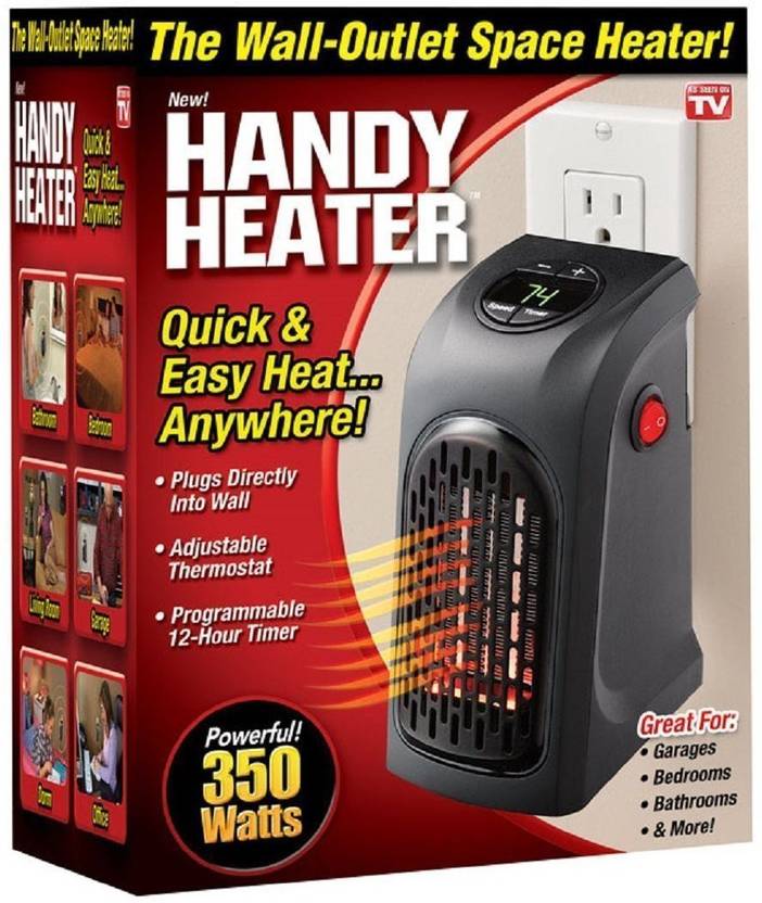 Introducing handy heater the wall-outlet space heater! other space heaters are big and bulky and can raise your heating Bill! A handy heater is the whole room space heater that plugs right into the wall and takes up no space at all! handy Heater's thermo-ceramic design makes it small but powerful. Handy Heater350 watt power warms up to 250 sq. Ft. Of warm comforting heat! transform any cold and chilly place into a warm and cosy place! perfect for any room in your home! great for dens, reading nooks, work, dorm rooms, offices, home offices, Campers, workspaces, benches, basements, garages & more! simply plug the handy heater into any Outlet, set the digital control to your ideal temperature and feel your room get toasty warm! you can even keep your spot warm with the automatic timer! perfect for chilly areas that have drafty windows and doors! compact design makes it easy for travel, so you can enjoy warmth & comfort wherever you like to relax.