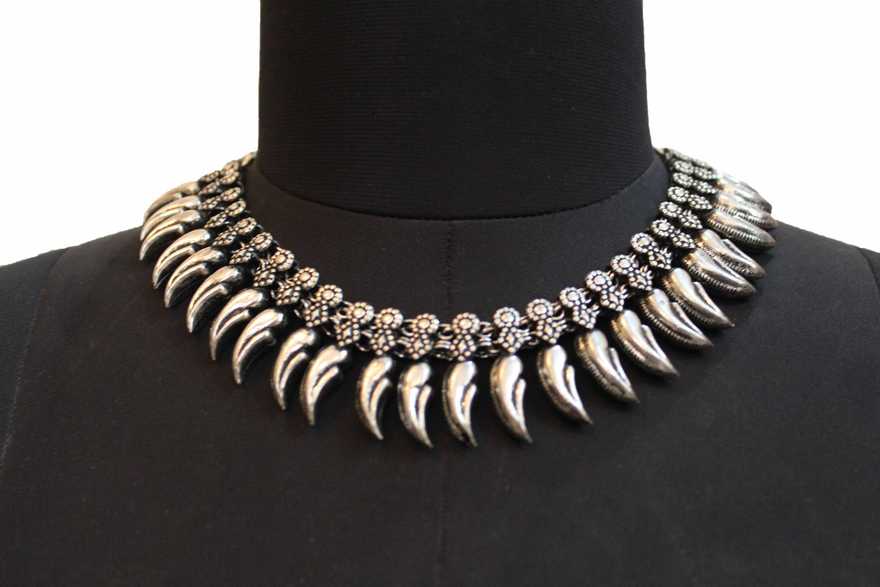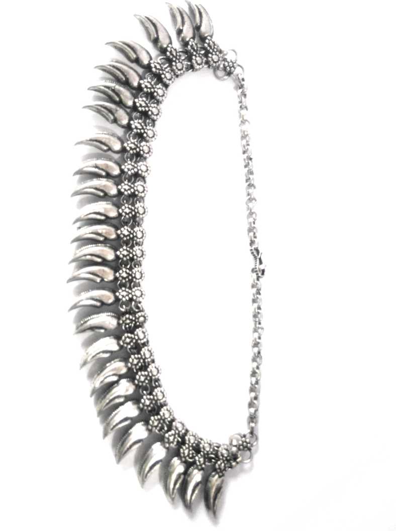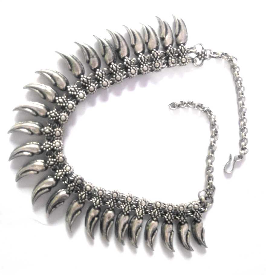 Single Layer Necklace choker Oxidised black silver tusk pattern metal beaded neck choker for women stylish Antique textured Jewelry |