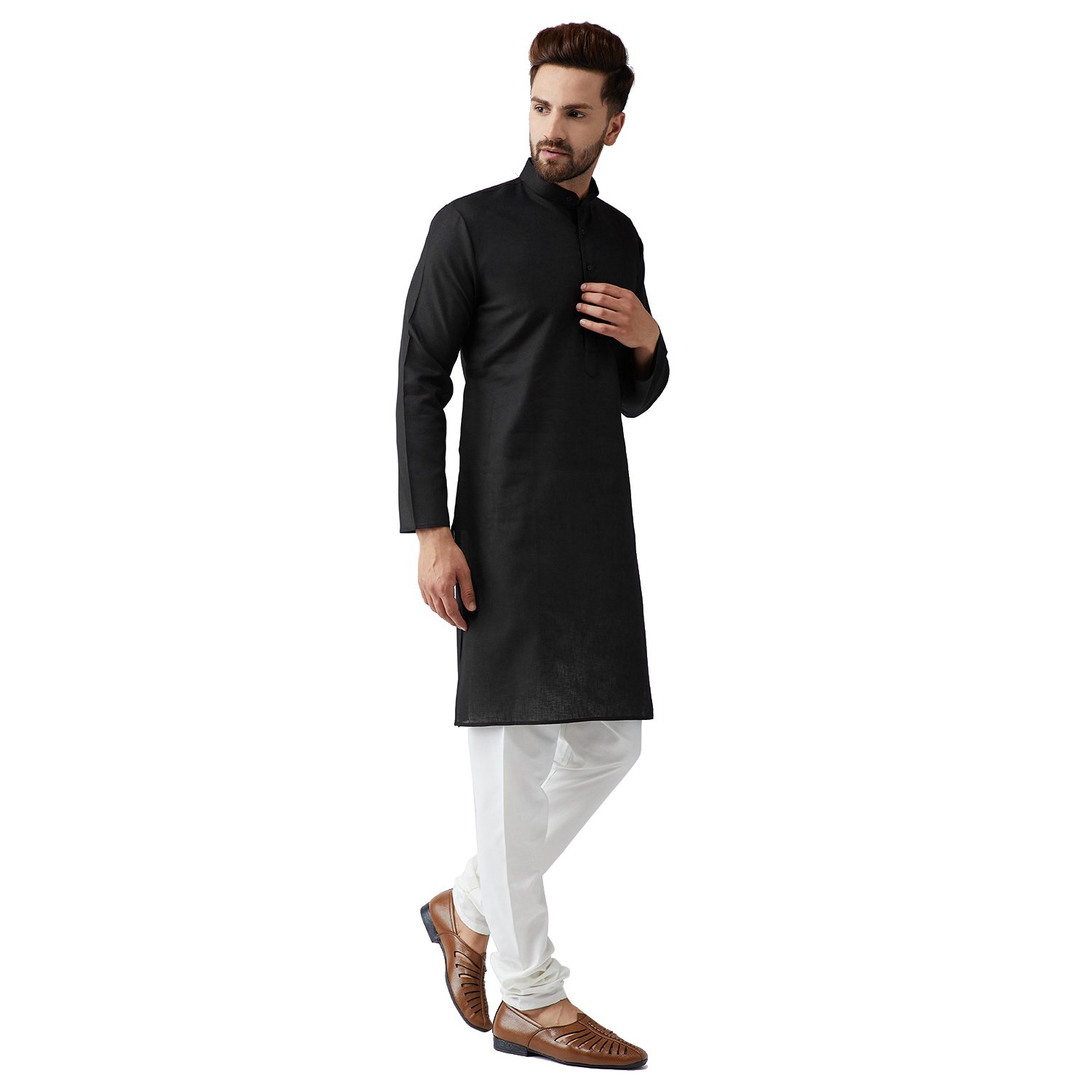 SOJANYA as a brand brings you quality and affordability. In market since 1958, we take pride in our commitment to maintain quality standards in each piece manufactured by us. Look your ethnic best wearing this Black and Off White Cotton Blend kurta and Pyjama Set . Made of Cotton Blend fabric, this regular-fit kurta Pyjama Set comprises a full-sleeved Cotton Blend kurta and churidaar Pyjama Set. Team this outifit with embroidered mojris and look apart on special occasions. |