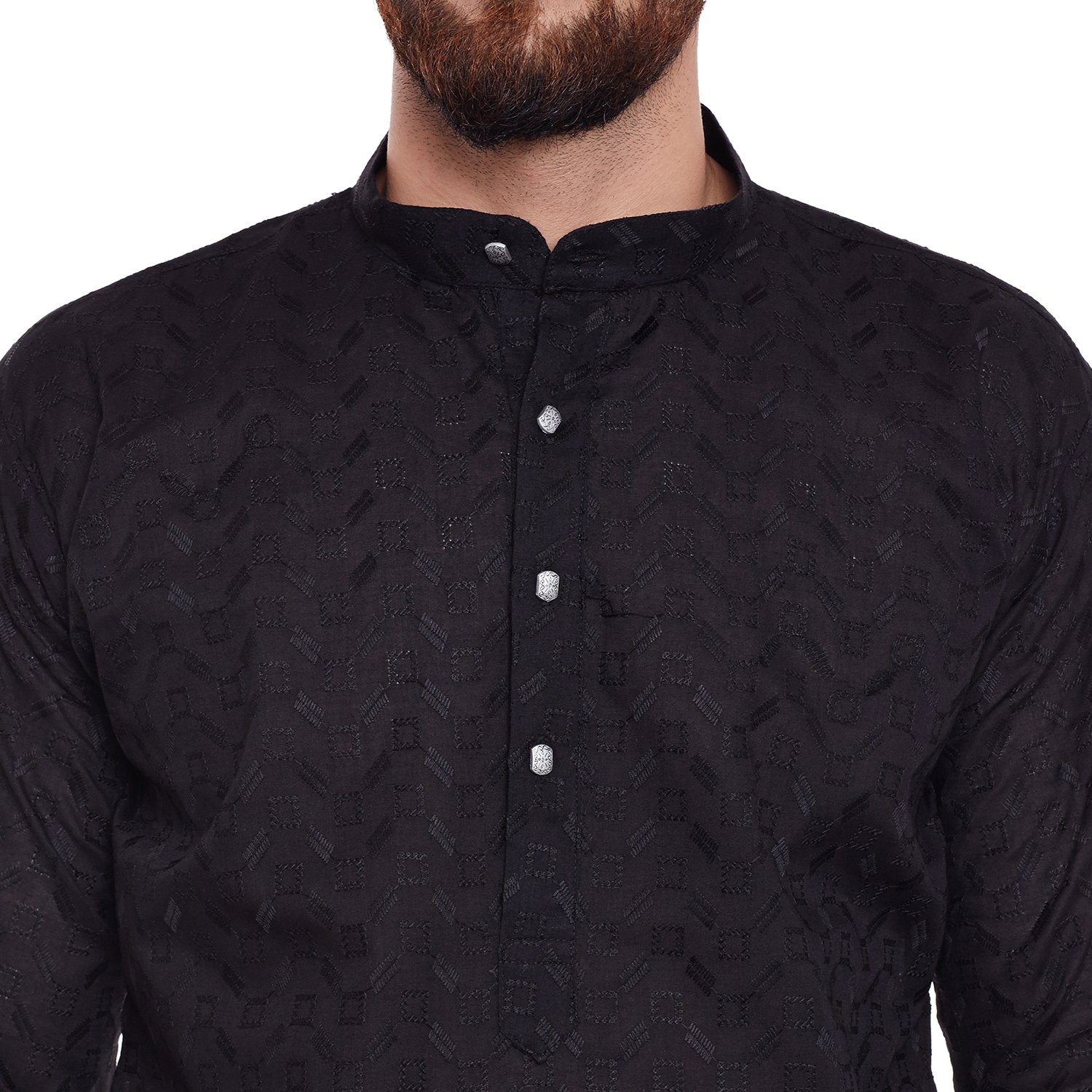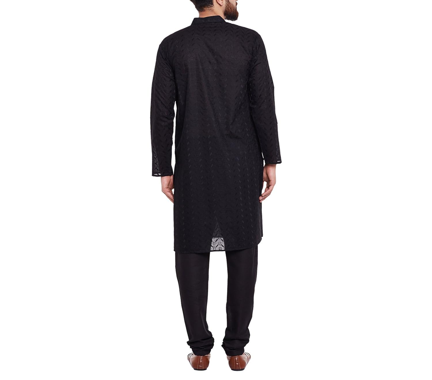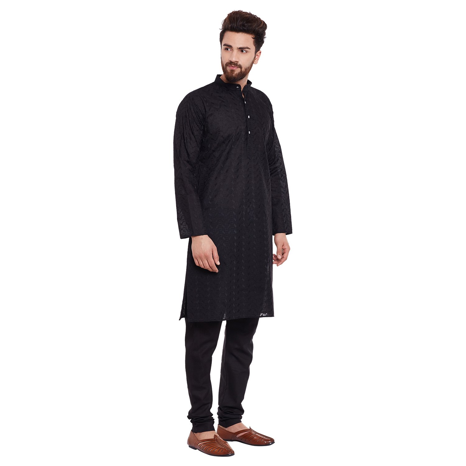 SOJANYA as a brand brings you quality and affordability. In market since 1958, we take pride in our commitment to maintain quality standards in each piece manufactured by us. Look your ethnic best wearing this Black chicken kurta and Black pyjama . Made of 100% fine cotton fabric, this regular-fit kurta pyjama set comprises a full-sleeved chicken kurta and churidaar pyjama. Team this outifit with embroidered mojris and look apart on special occasions. |