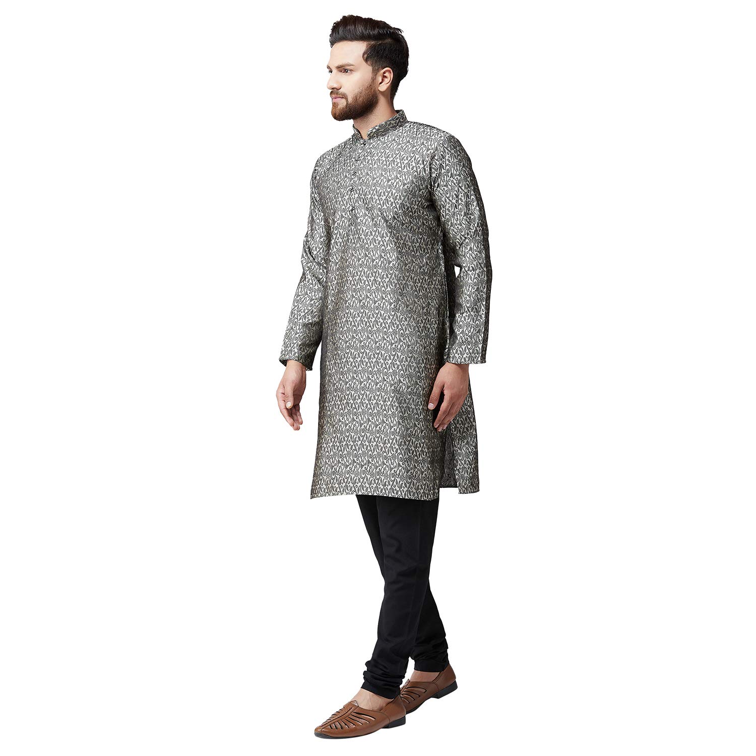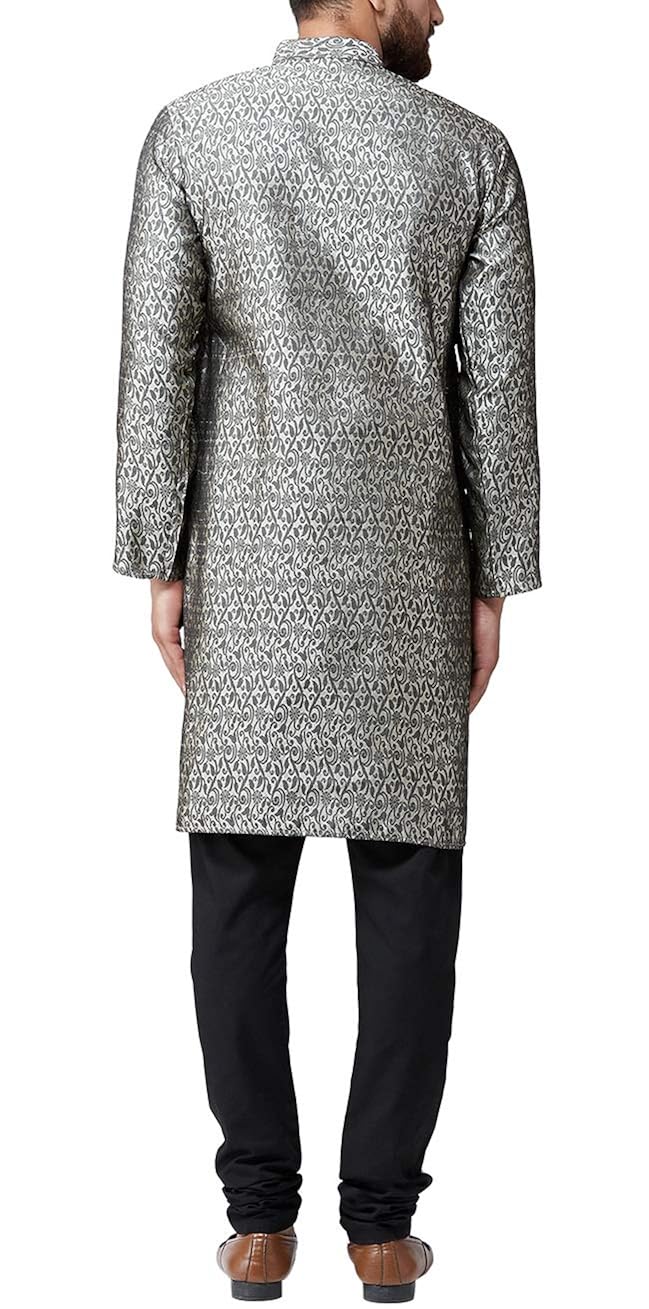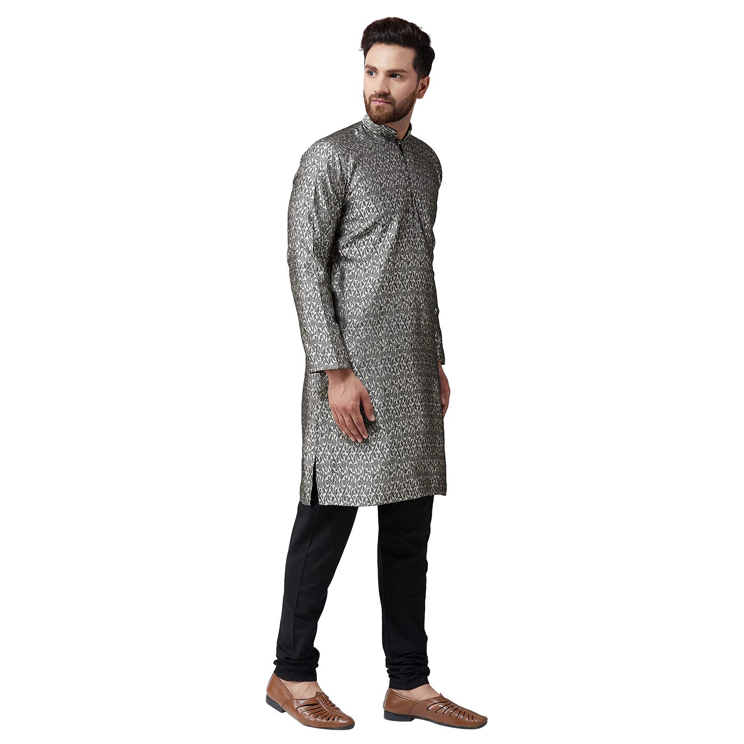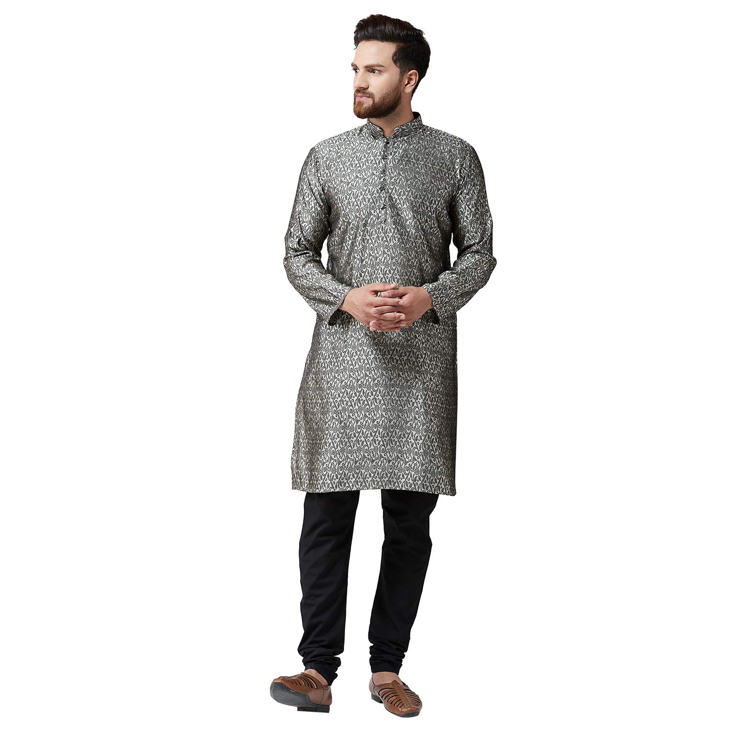 SOJANYA as a brand brings you quality and affordability. In market since 1958, we take pride in our commitment to maintain quality standards in each piece manufactured by us. Look your ethnic best wearing this Blue Silk Blend kurta and Black Pyjama Set . Made of Silk Blend fabric, this regular-fit kurta Pyjama Set comprises a full-sleeved Silk Blend kurta and churidaar Pyjama Set. Team this outifit with embroidered mojris and look apart on special occasions. |