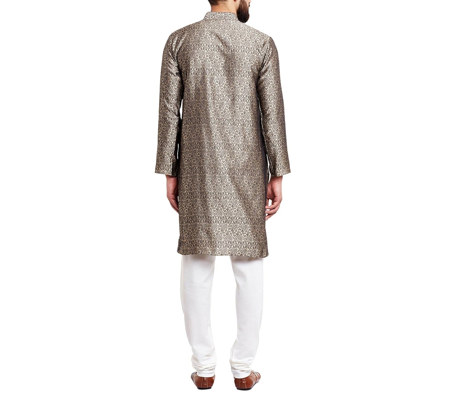 SOJANYA as a brand brings you quality and affordability. In market since 1958, we take pride in our commitment to maintain quality standards in each piece manufactured by us. Look your ethnic best wearing this Bronze kurta and White pyjama . Made of cotton silk, this regular-fit kurta pyjama set comprises a full-sleeved kurta with self floral motifs and pyjama. Team this outifit with mojris and look apart on special occasions. |