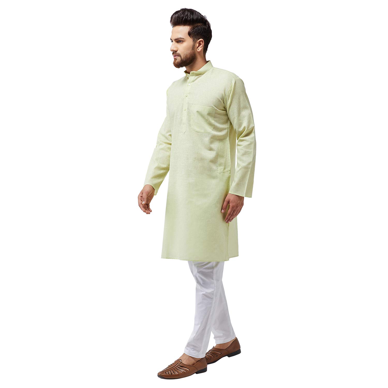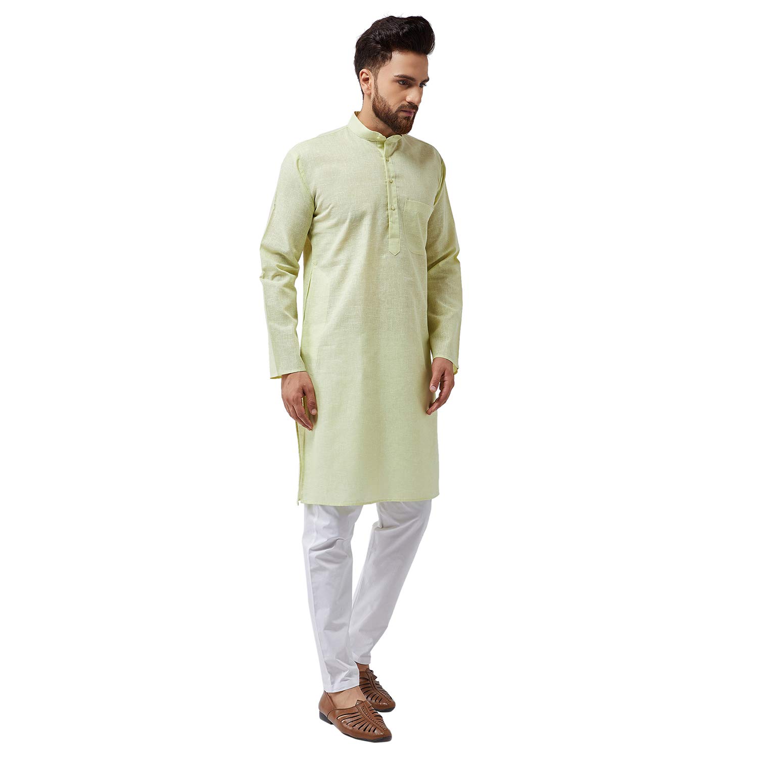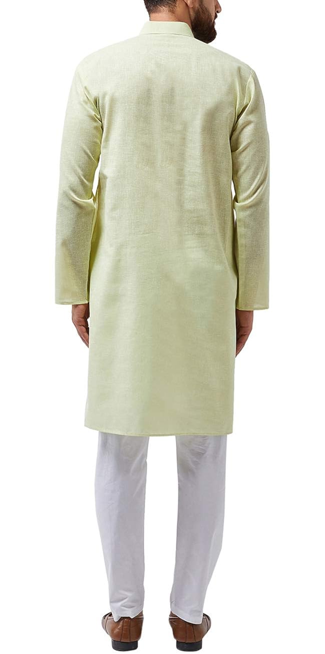 SOJANYA as a brand brings you quality and affordability. In market since 1958, we take pride in our commitment to maintain quality standards in each piece manufactured by us. Look your ethnic best wearing this Black kurta and White Pyjama Set. Made of Cotton Blend fabric, this is a regular-fit kurta Pyjama Set. Team this outifit with embroidered mojris and look apart on special occasions. |