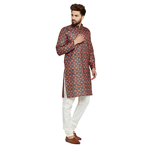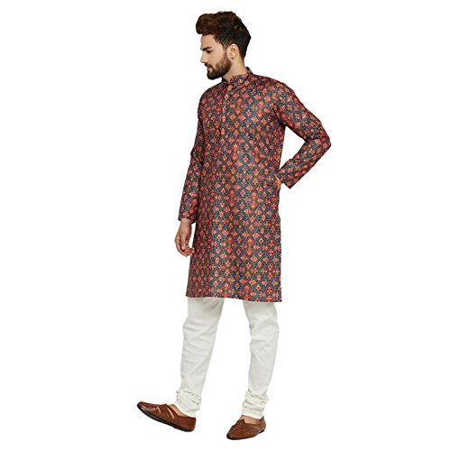 SOJANYA as a brand brings you quality and affordability. In market since 1958, we take pride in our commitment to maintain quality standards in each piece manufactured by us. Look your ethnic best wearing this Multicolored Kurta Pyjama set. Made of cotton, this regular-fit kurta pyjama set comprises a full-sleeved Multicolored kurta with smart digital print on it and Off-White churidaar pyjama. Team this outifit with mojris and look apart on special occasions. |
