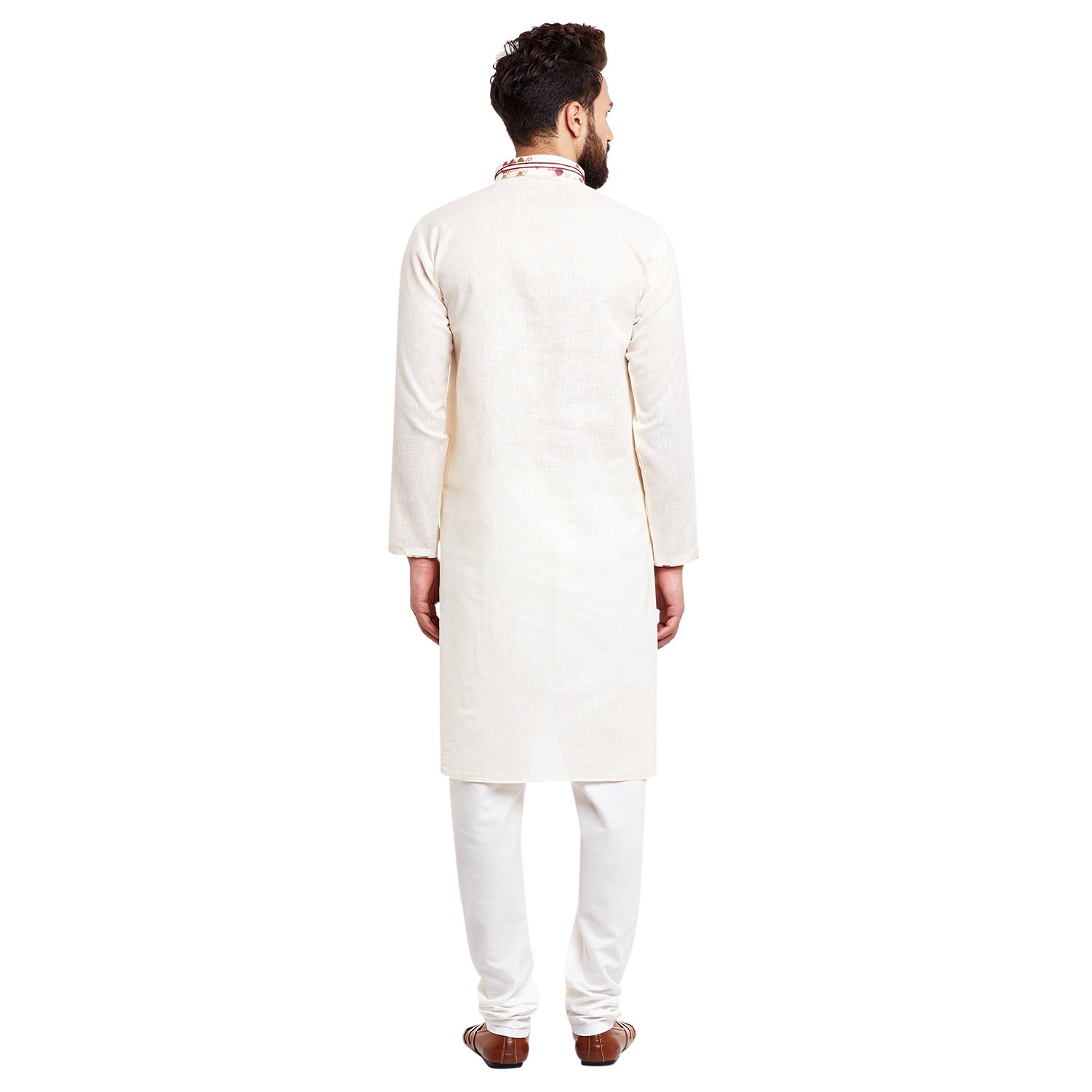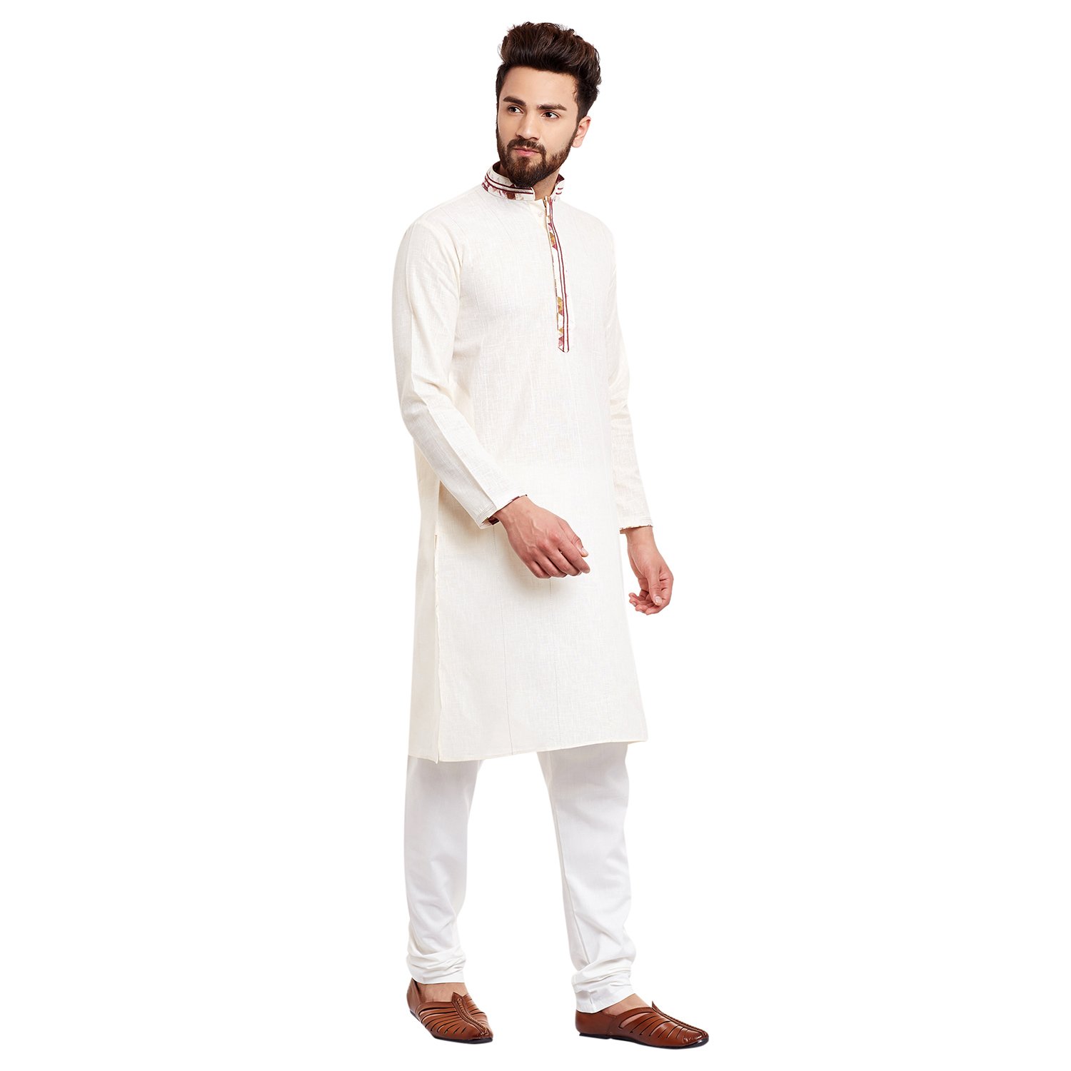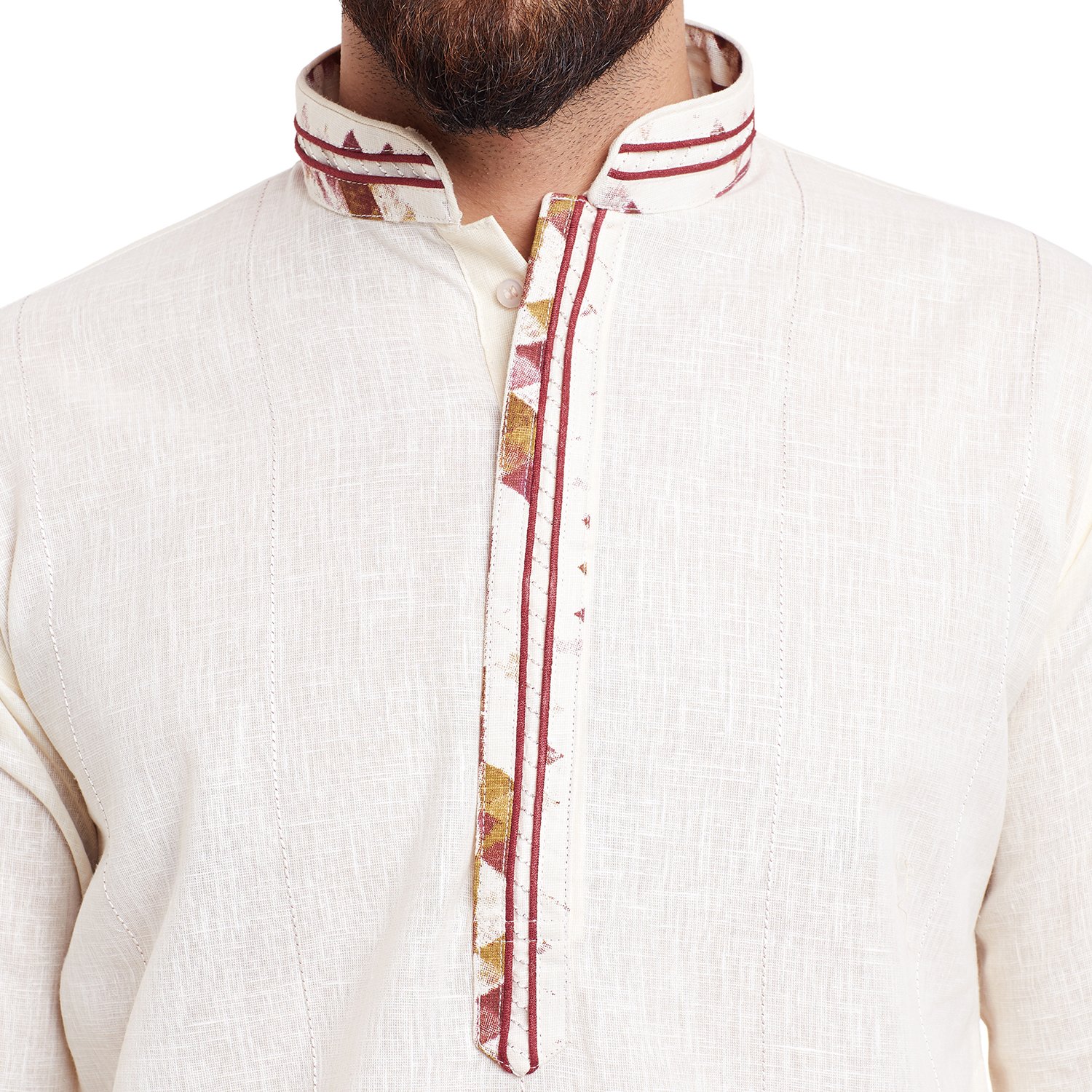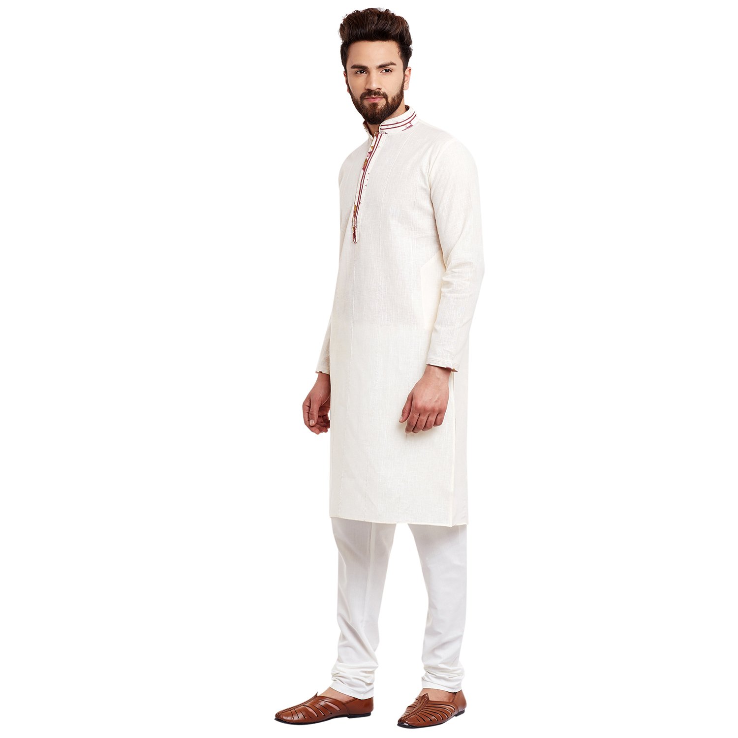 SOJANYA as a brand brings you quality and affordability. In market since 1958, we take pride in our commitment to maintain quality standards in each piece manufactured by us. Look your ethnic best wearing this kurta with threading on front and pyjama . Made of 100% Premium Cotton Linen, this regular-fit kurta pyjama set comprises a full-sleeved kurta with Mehroon colored detailing on neck/handcuffs and a pyjama. Team this outifit with mojris and look apart on special occasions. |