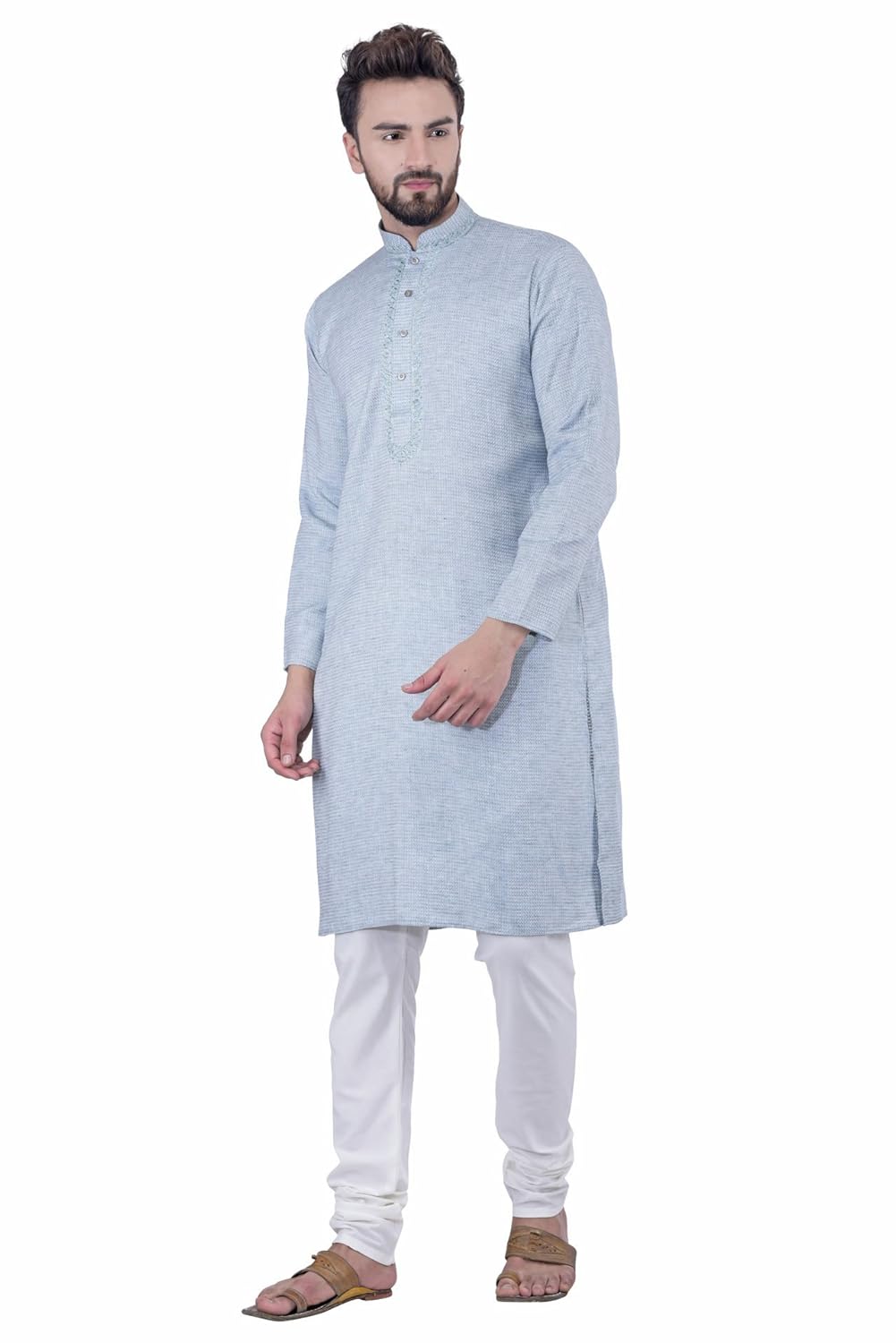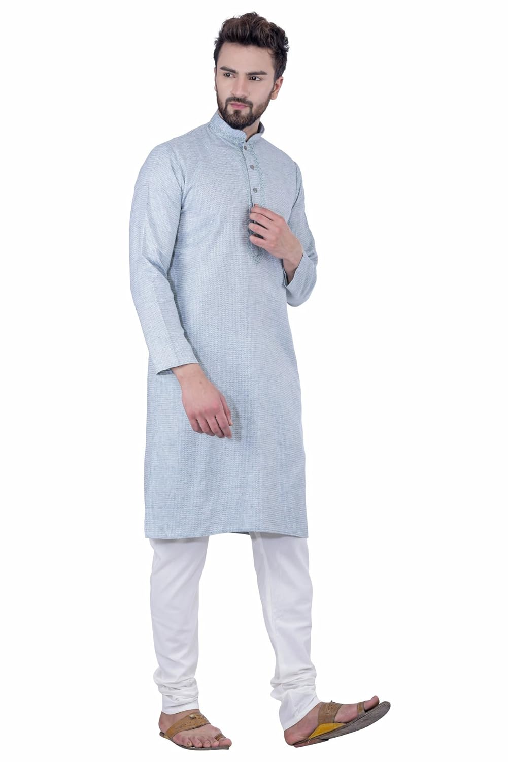SOJANYA as a brand brings you quality and affordability. In market since 1958, we take pride in our commitment to maintain quality standards in each piece manufactured by us. Look your ethnic best wearing this kurta and pyjama . Made of 100% Premium Cotton Linen, this regular-fit kurta pyjama set comprises a full-sleeved kurta with self design & embroidery on neck and a pajama. Team this outifit with mojris and look apart on special occasions. |