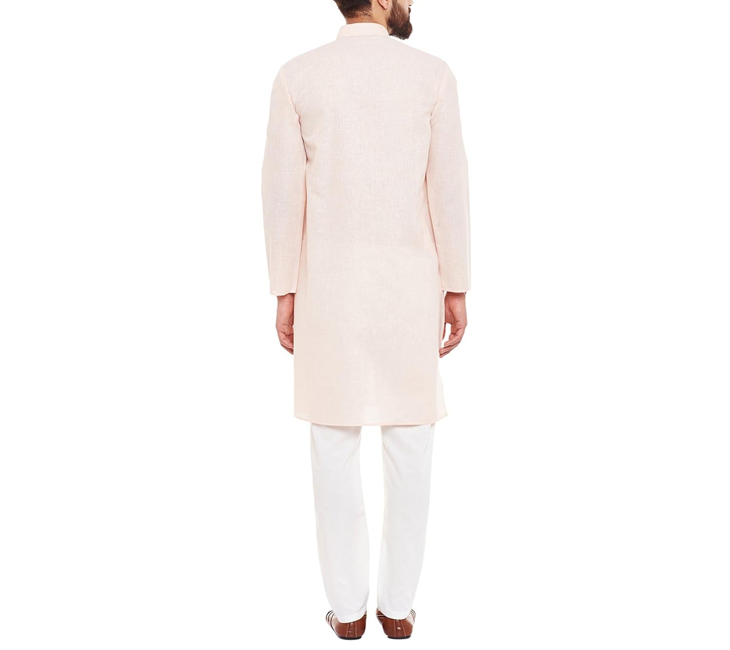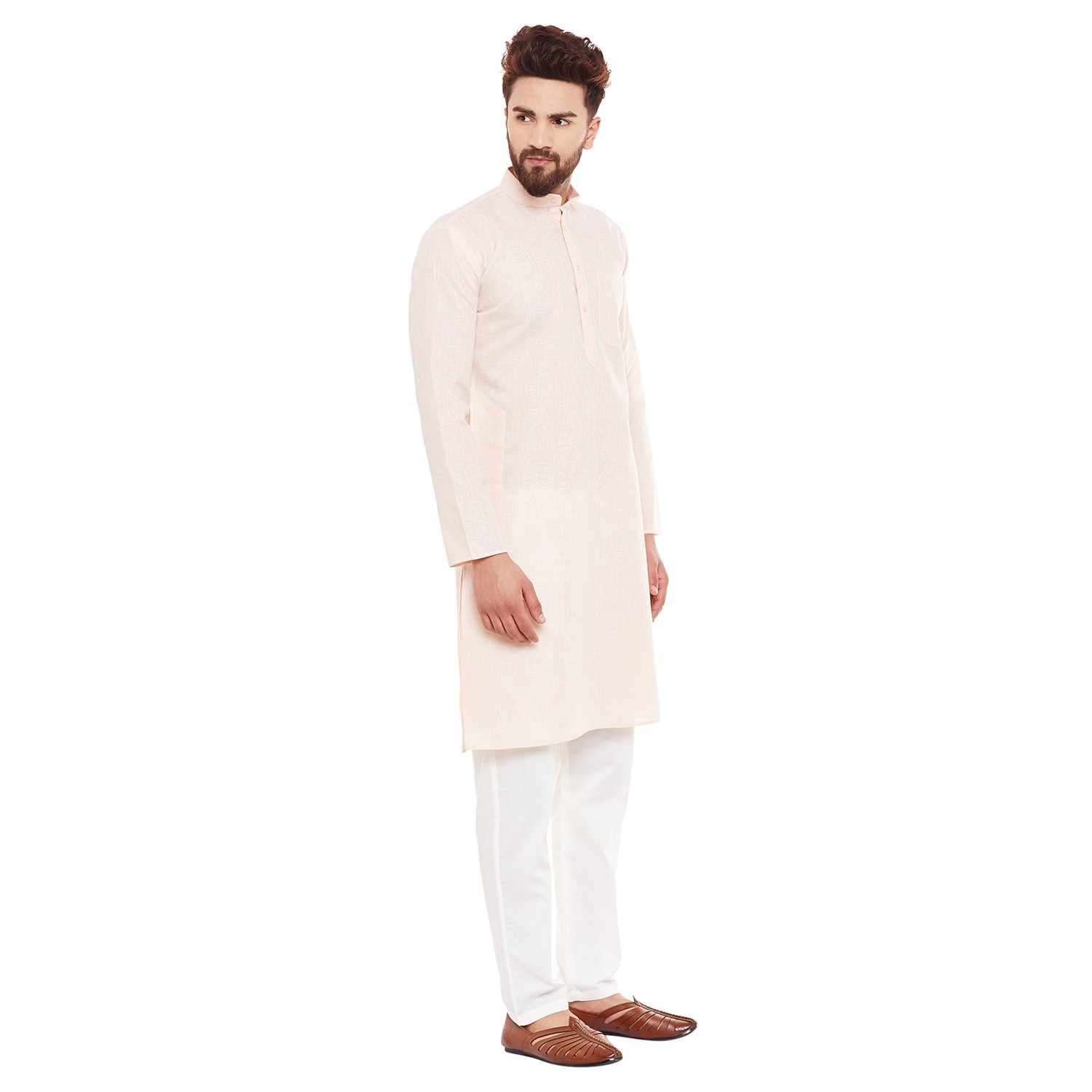 SOJANYA as a brand brings you quality and affordability. In market since 1958, we take pride in our commitment to maintain quality standards in each piece manufactured by us. Look your ethnic best wearing this Peach coloured kurta pyjama set . Made from 100% cotton linen, this regular-fit kurta pyjama set comprises a full-sleeved kurta and pyjama to give you classy look with a comfort feel. |