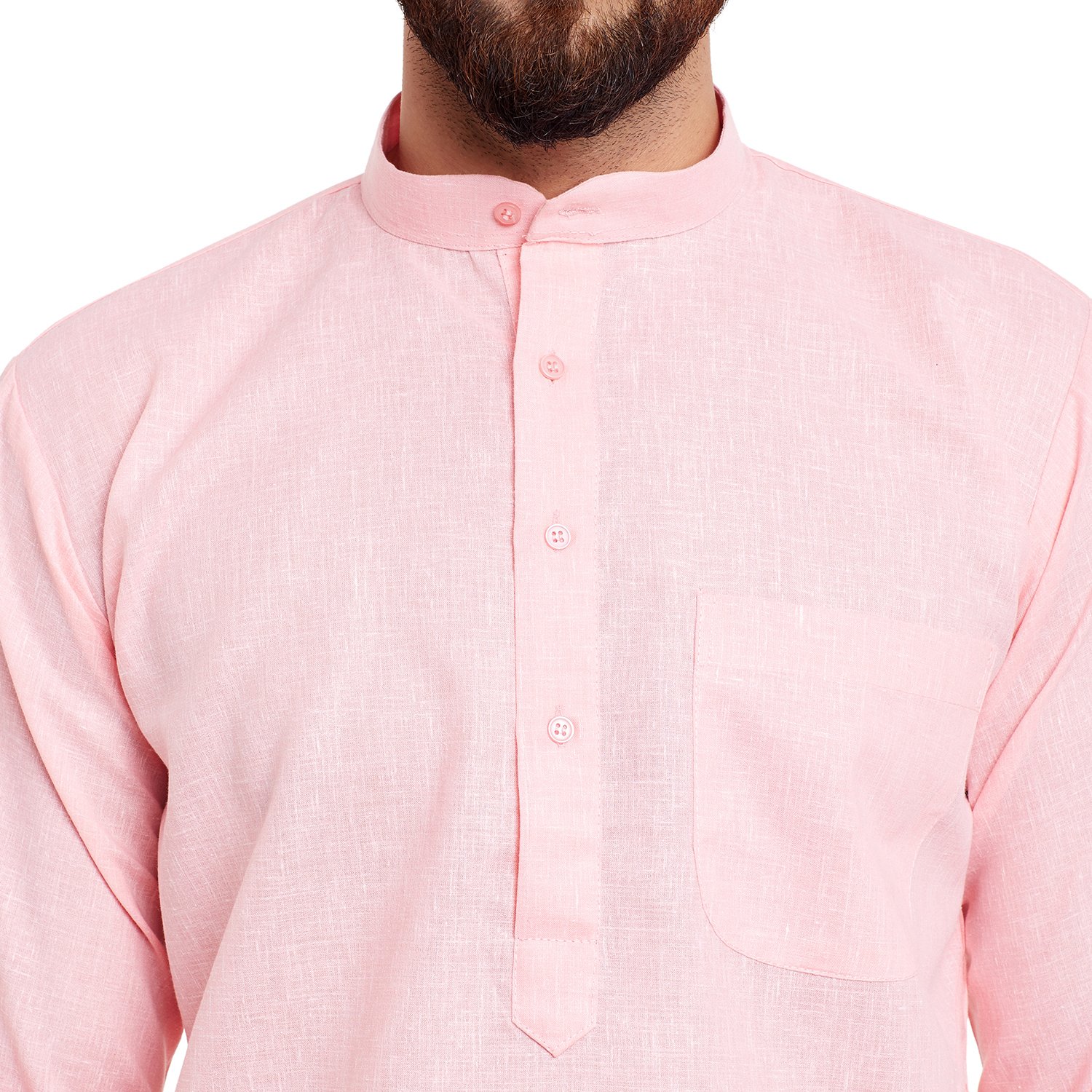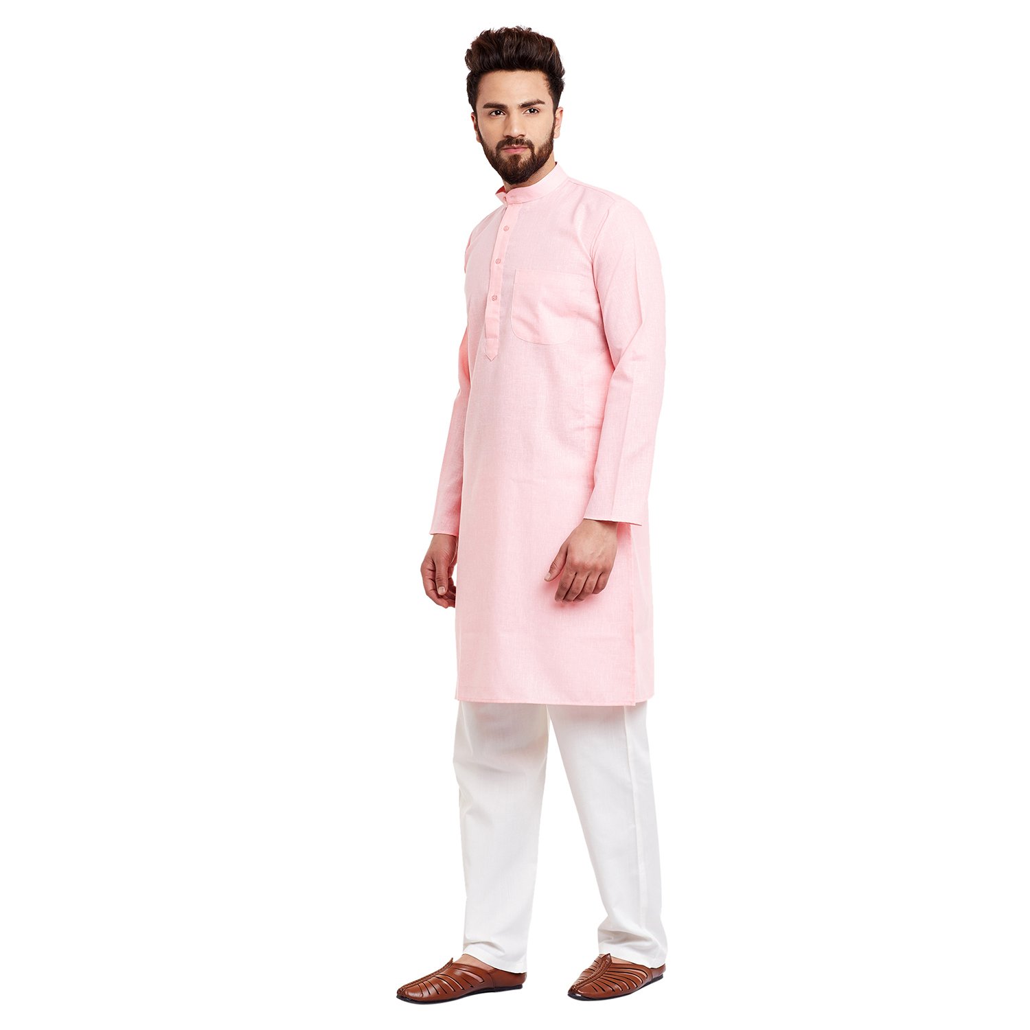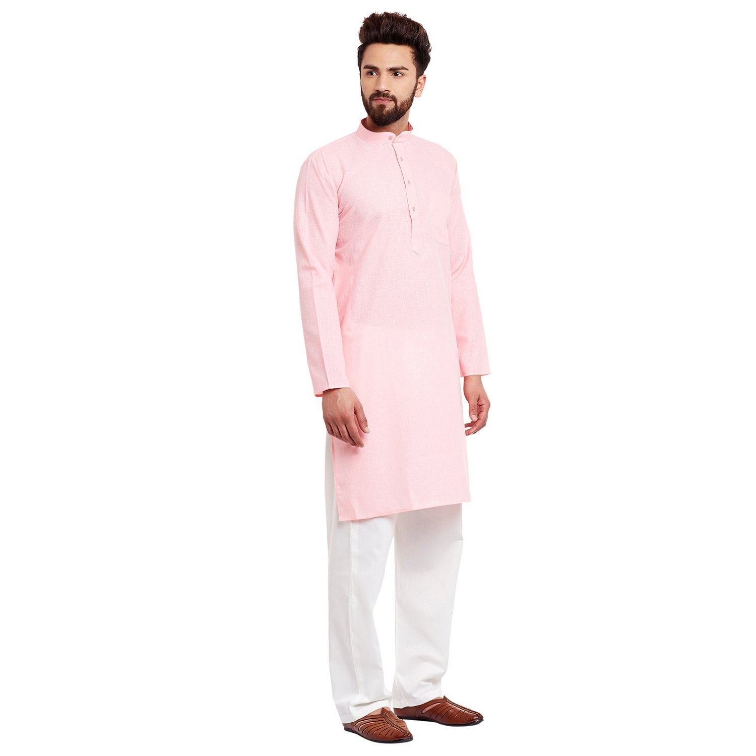 SOJANYA as a brand brings you quality and affordability. In market since 1958, we take pride in our commitment to maintain quality standards in each piece manufactured by us. Look your ethnic best wearing this Pink coloured kurta pyjama set . Made from 100% cotton linen, this regular-fit kurta pyjama set comprises a full-sleeved kurta and pyjama to give you classy look with a comfort feel. |