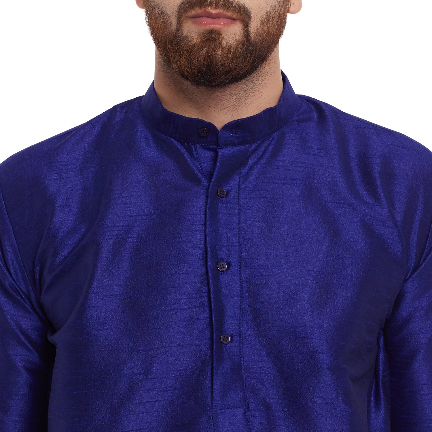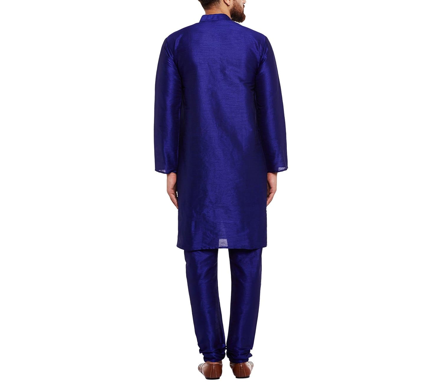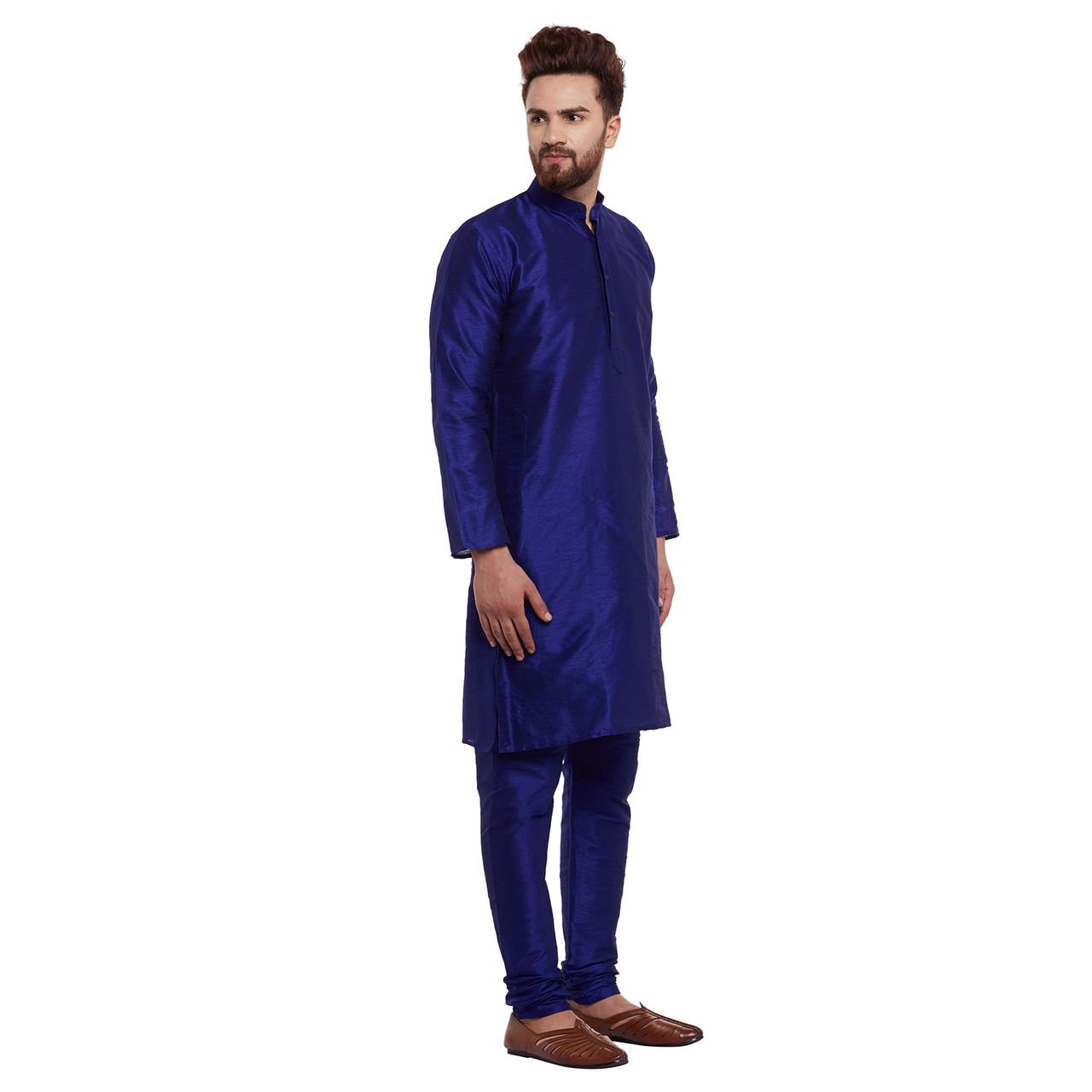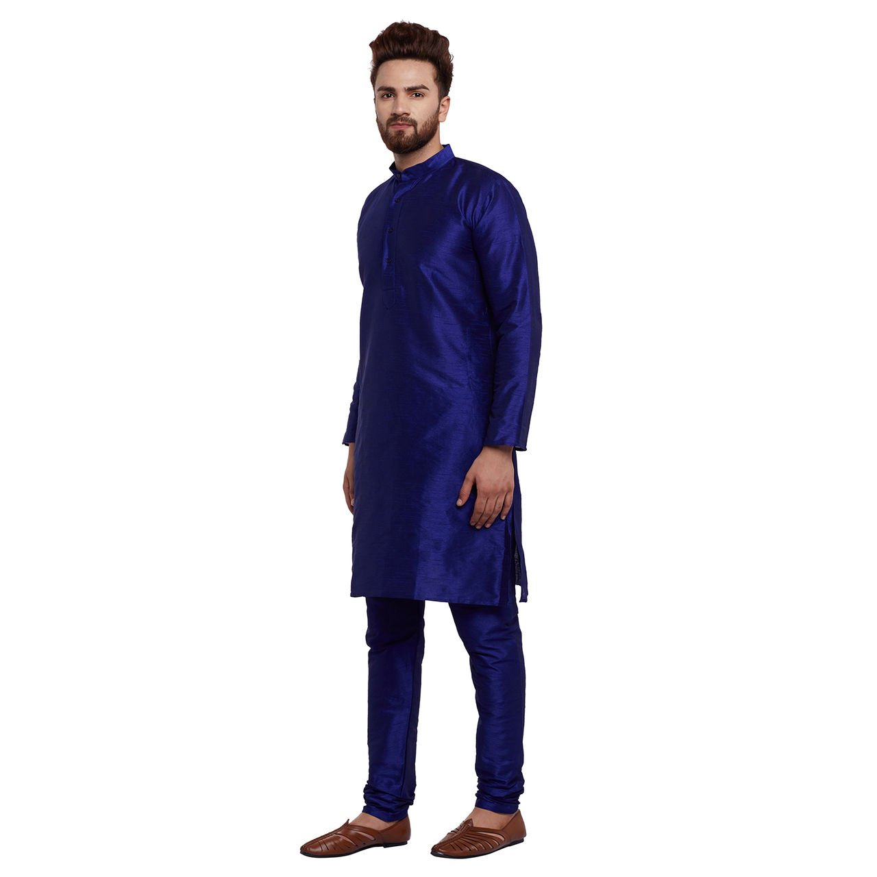 SOJANYA as a brand brings you quality and affordability. In market since 1958, we take pride in our commitment to maintain quality standards in each piece manufactured by us. Look your ethnic best wearing this Royal blue coloured kurta pyjama set for men from the fashion house of Sojanya. Made from dupion silk, this regular-fit kurta pyjama set comprises a full-sleeved kurta and pyjama to complete your look. Team this outfit with embroidered mojris and rock the party that you attend. |
