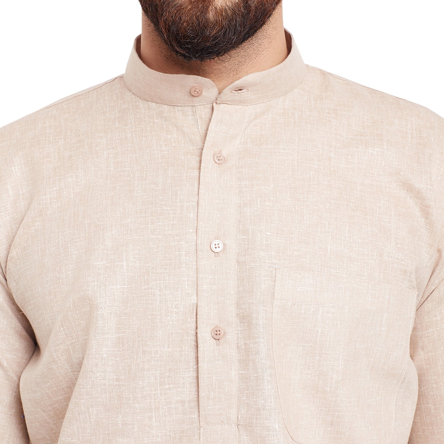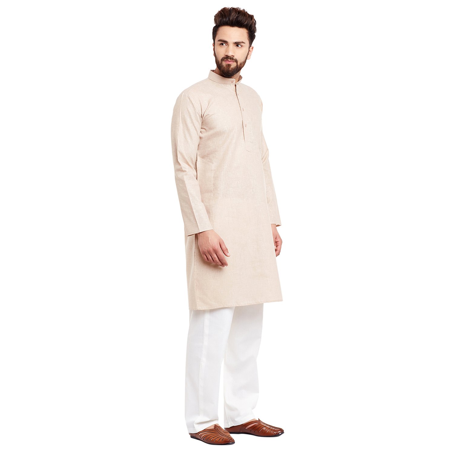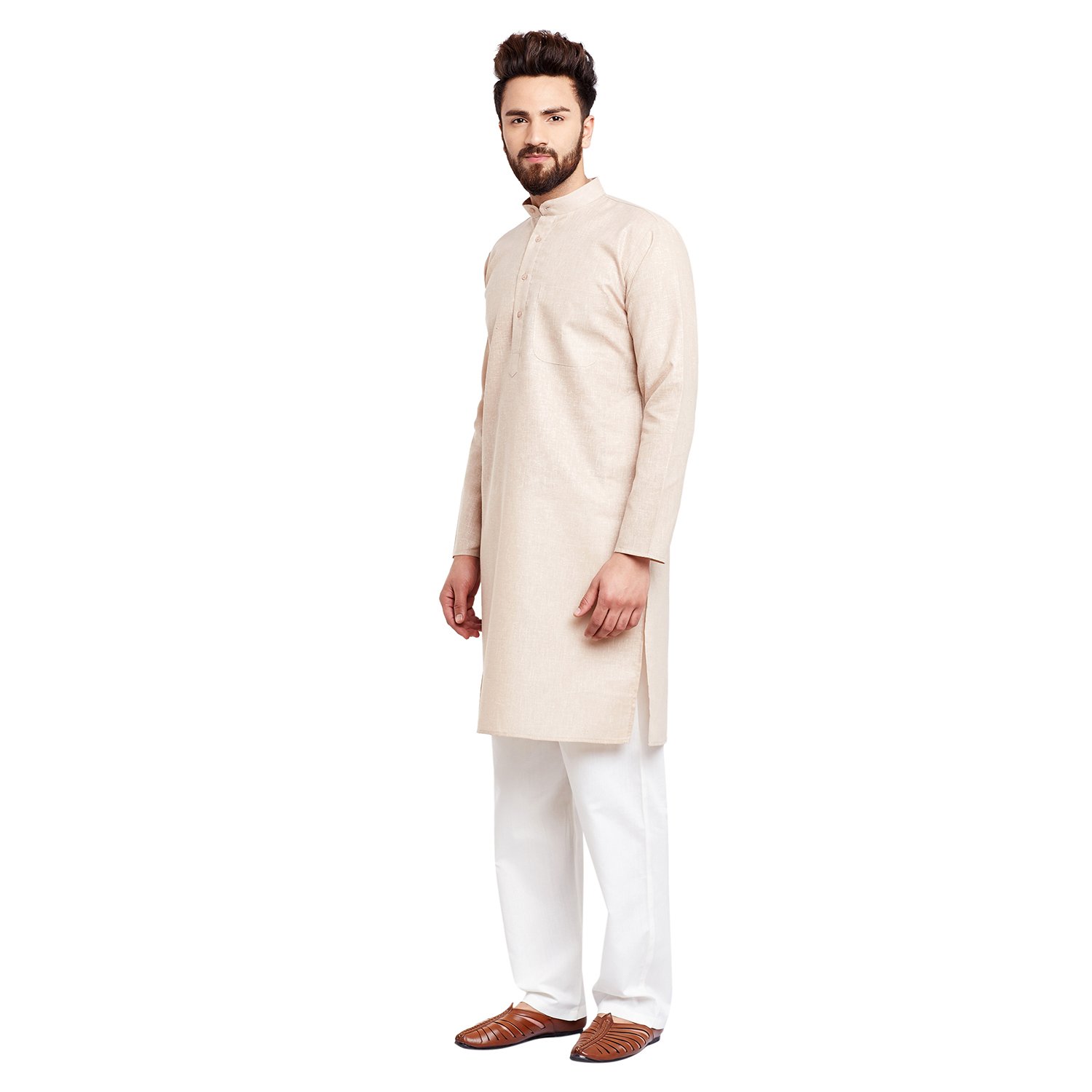 SOJANYA as a brand brings you quality and affordability. In market since 1958, we take pride in our commitment to maintain quality standards in each piece manufactured by us. Look your ethnic best wearing this Tortilla Brown coloured kurta pyjama set . Made from 100% cotton linen, this regular-fit kurta pyjama set comprises a full-sleeved kurta and pyjama to give you classy look with a comfort feel. |
