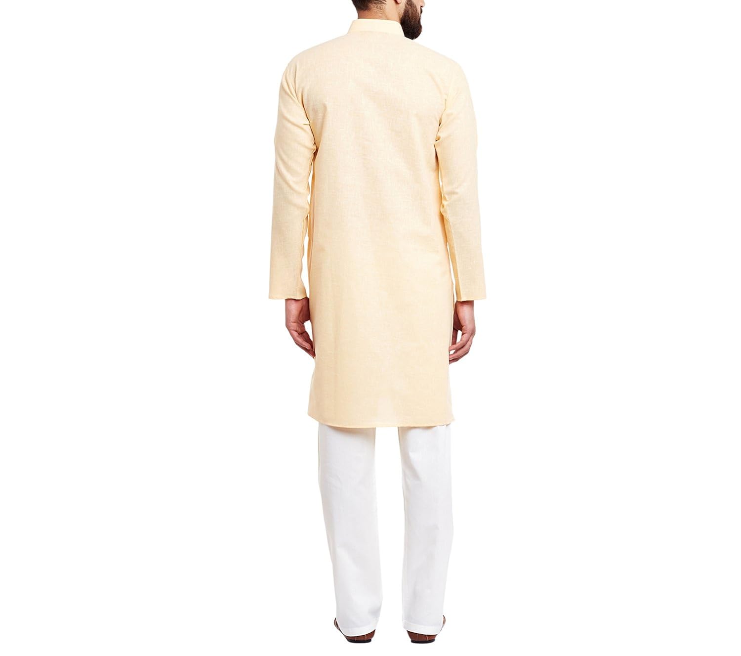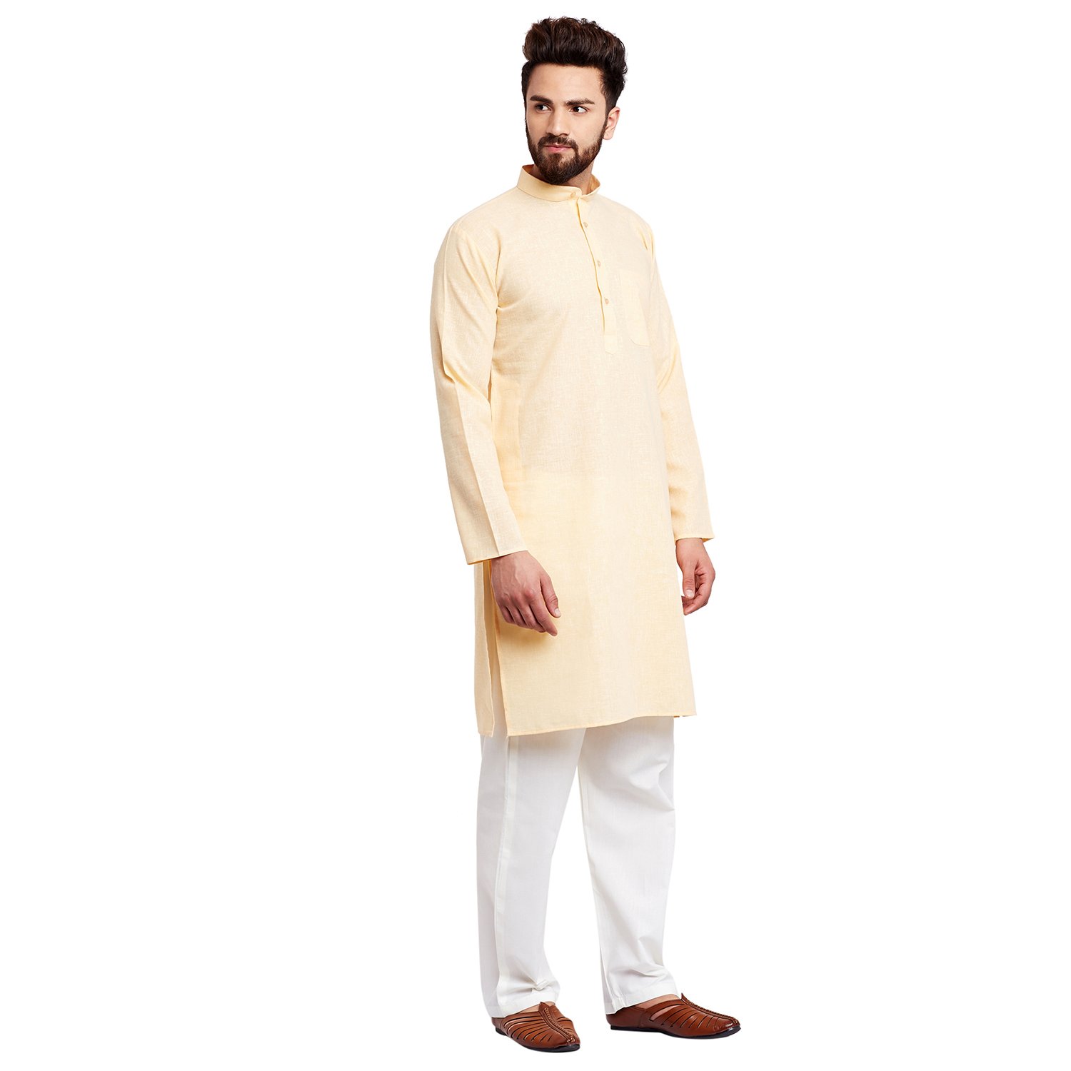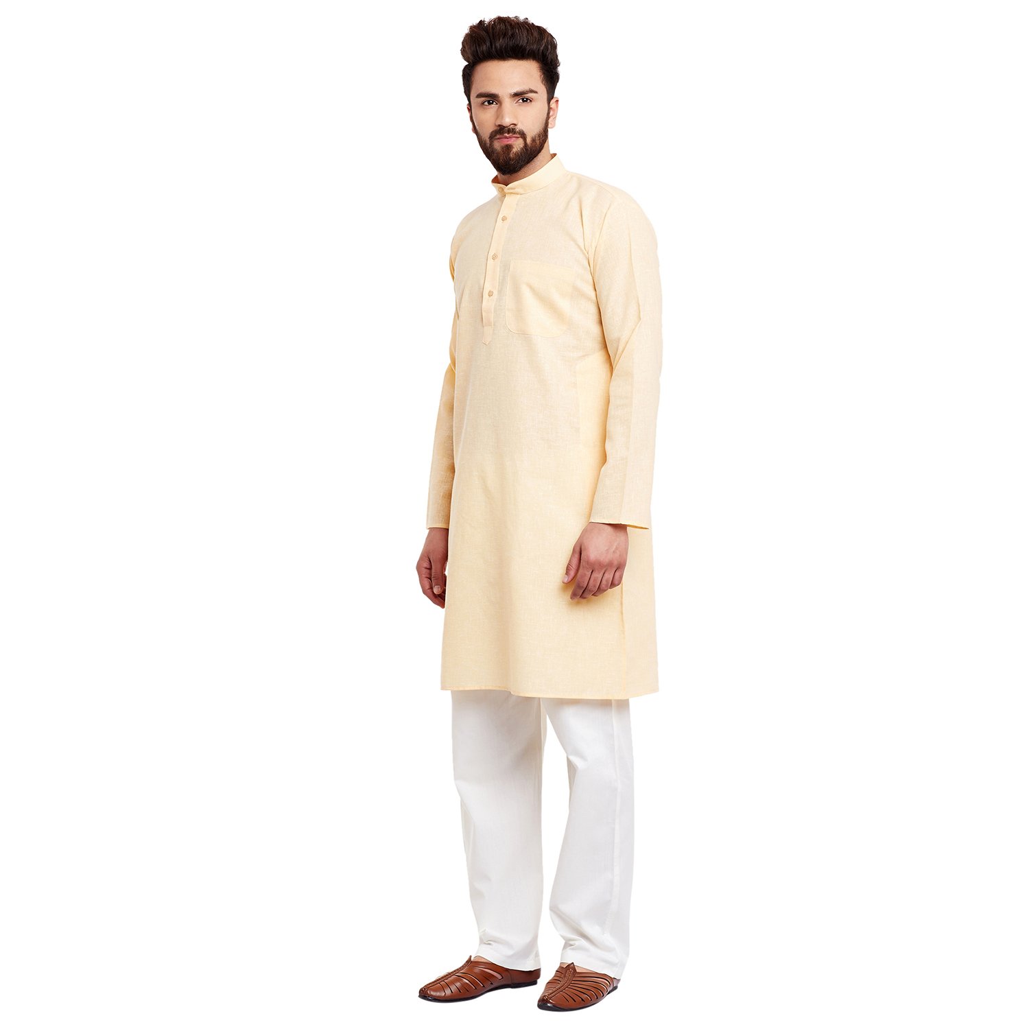 SOJANYA as a brand brings you quality and affordability. In market since 1958, we take pride in our commitment to maintain quality standards in each piece manufactured by us. Look your ethnic best wearing this Yellow coloured kurta pyjama set . Made from 100% cotton linen, this regular-fit kurta pyjama set comprises a full-sleeved kurta and pyjama to give you classy look with a comfort feel. |