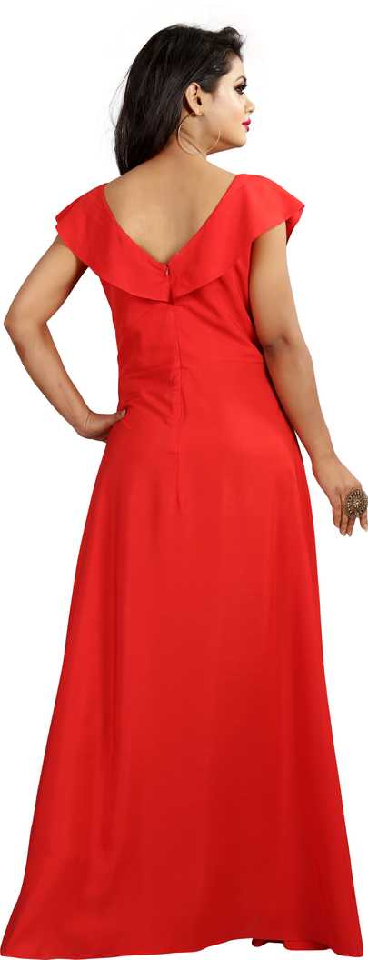 AVG198_XL - New Latest Designer Printed & Plain Simple American Crepe Red Short Sleeve Round Neck Western Fancy Long Gown Dress |