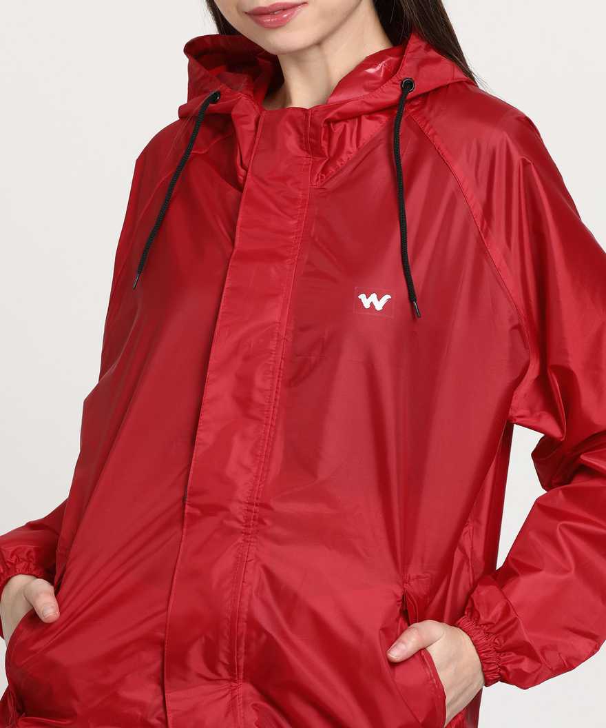 This model has a height of 5 feet 9 inches and is wearing a Raincoat of Size |