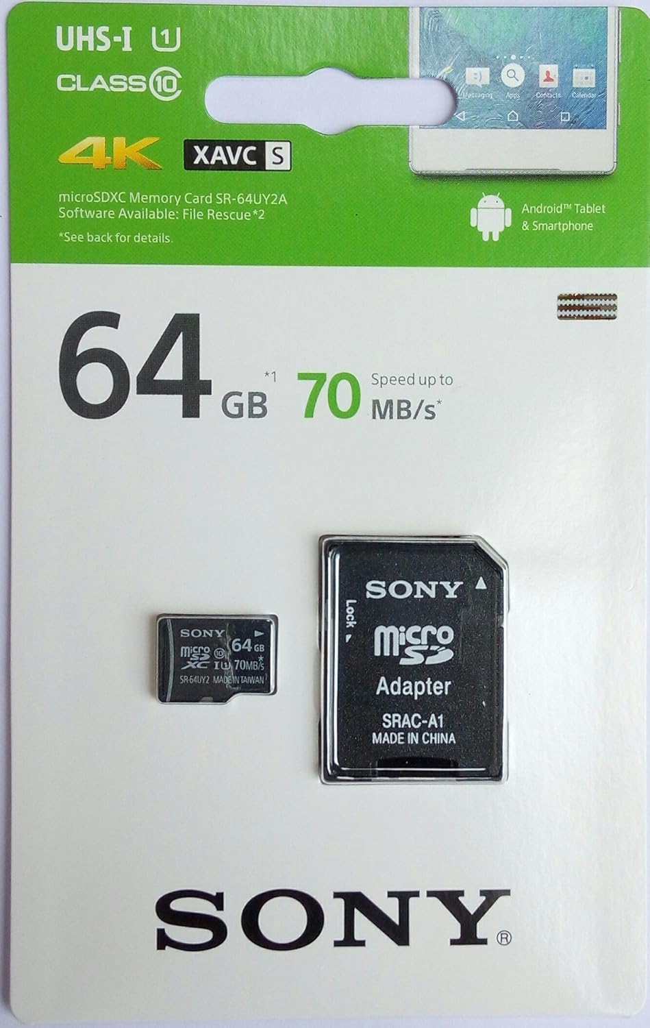 Sony 64GB MicroSD Class 10 UHS-1 Memory Card (SR-64UY2A/T1) with Adapter