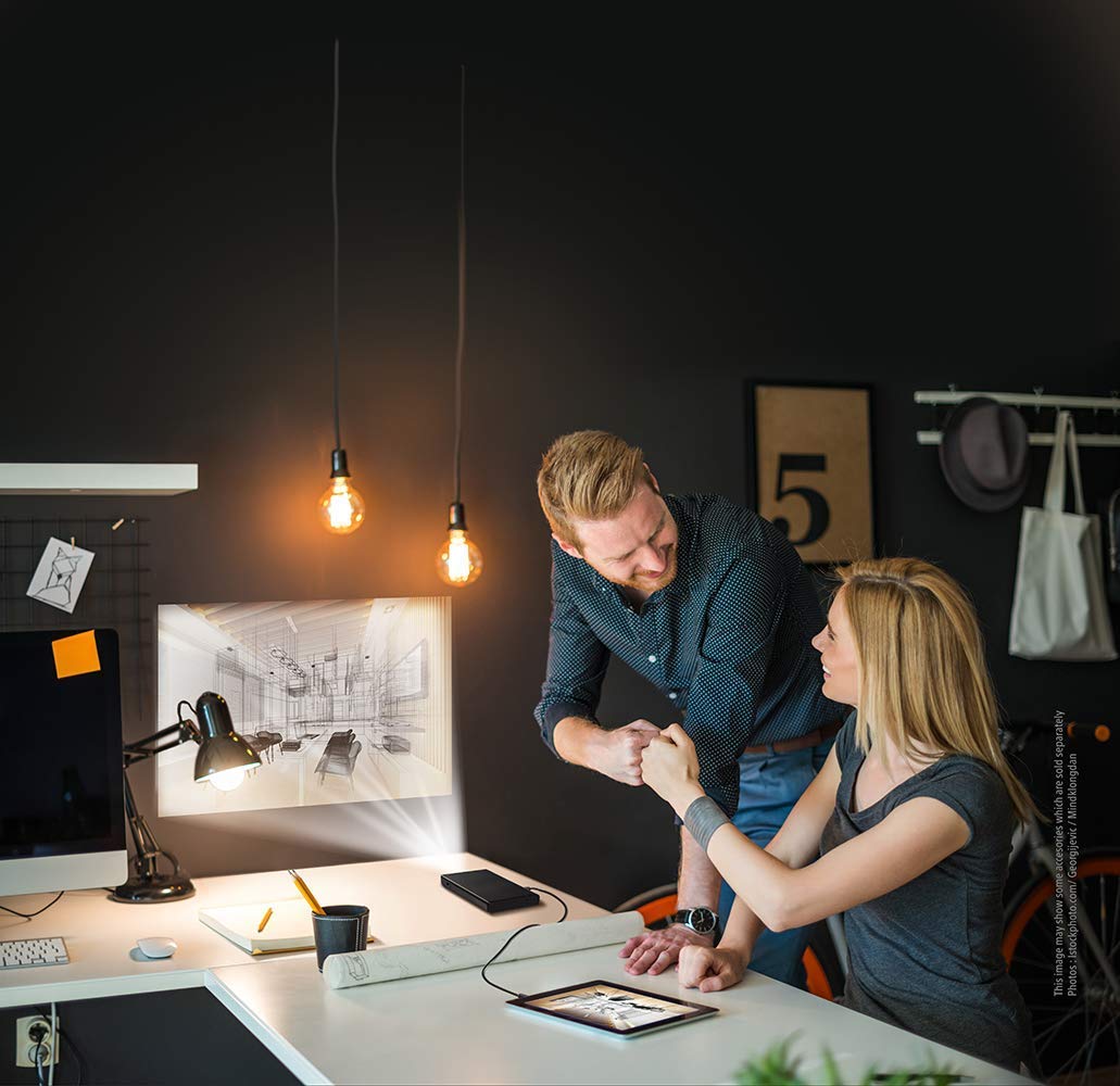 Short throw- display your content on a screen, up to 120” at a 11-foot throw distance