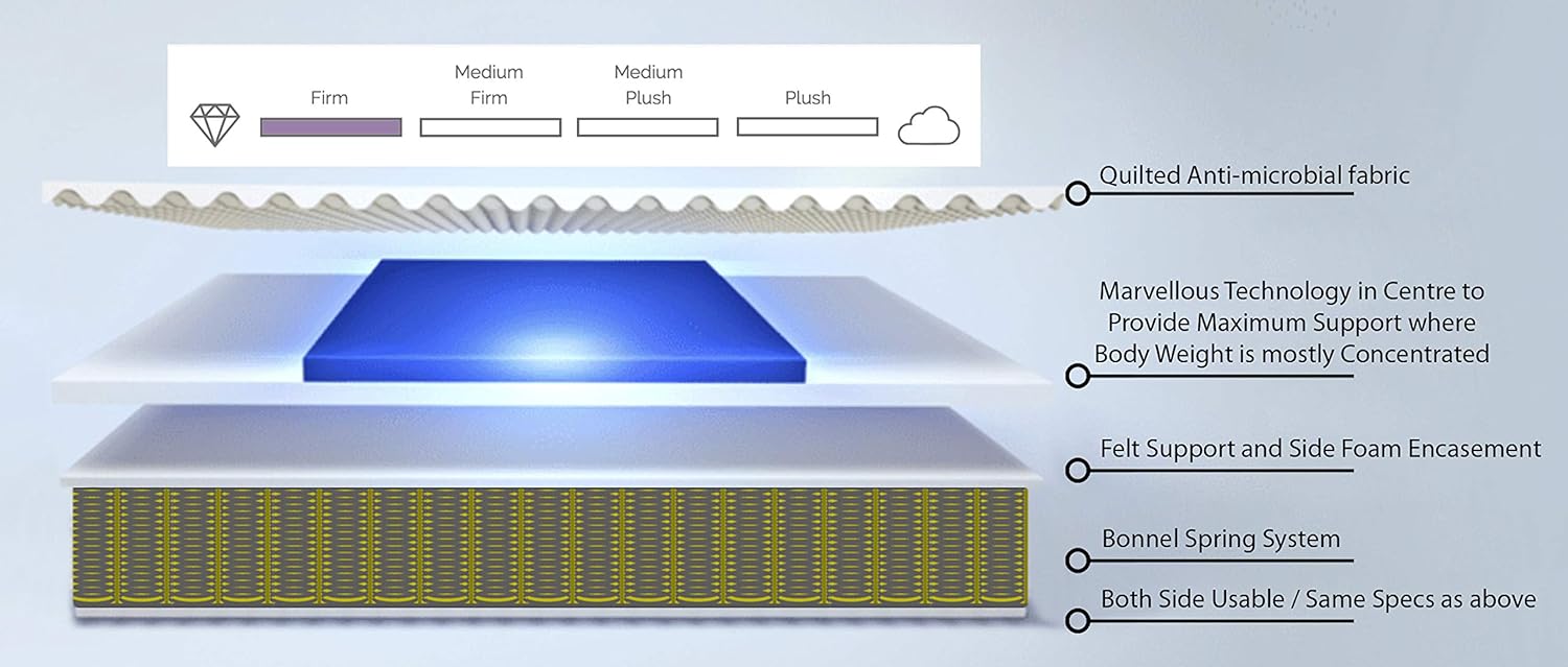 Prime Material : Bonnel Spring and High Density (HD) Foam