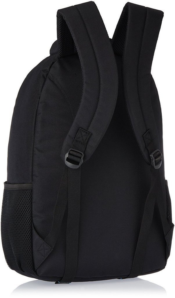 Outer Material: Polyester, Color: Black Capacity: 30 liters; Weight: 470 grams; Dimensions: 31 cms x 18 cms x 46 cms (LxWxH) Number of Compartments: 3 Laptop Compatibility: Yes, Laptop Size: 15 inches Water Proof & padded shoulder straps for comforts