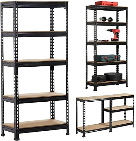 STAR WORK Black Adjustable Set Of 5-Shelf Metal Shelving Unit Storage Utility Rack Garage Shelves Display Rack Steel Bootless Rivet Rack,63 Inches Height 1-Pack (63 X 24 X 12 Inch - H X W X D,Black)