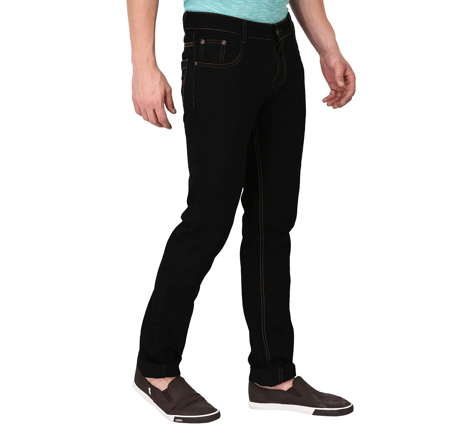 Mid Rise Non Stretch Jeans; Slim fit denim