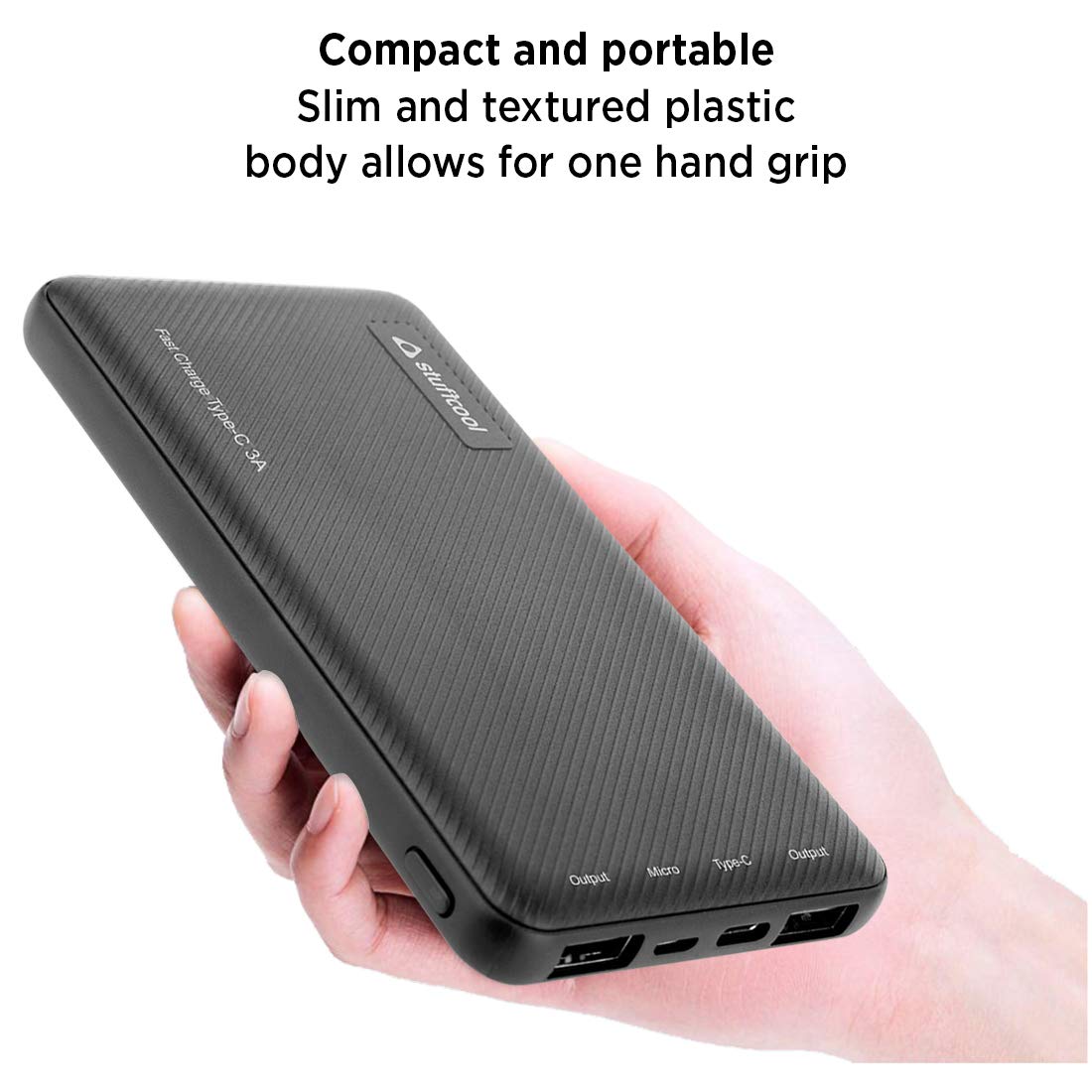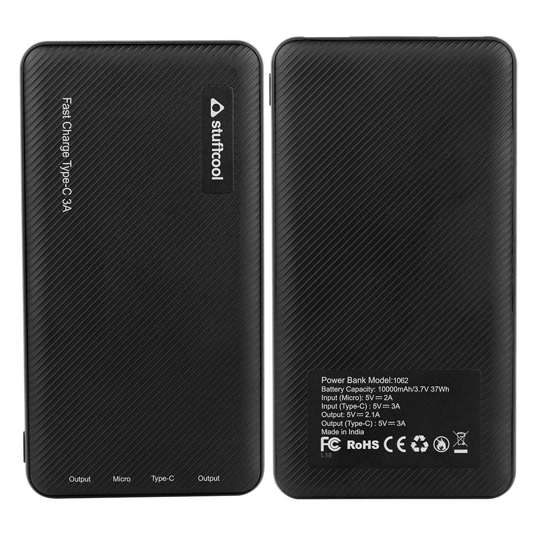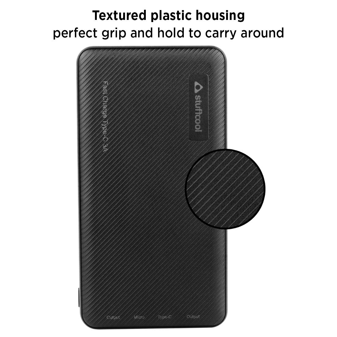 Stuffcool Type-C 3A Fast Charge 10000mAh Li Polymer Power Bank for Smartphones - Textured Housing – Black