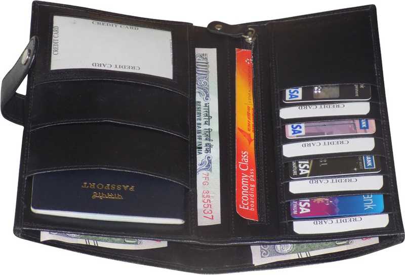 Style 98 presents Black Genuine Leather Long Money Clip Wallet, exclusively designed for Men and Women to carry their Cards,Cash, Passport, Cheque Book,Pass Book and other valauables while on the move. This wallet has 5 compartments. This wallet is made up of Milled leather. This wallet has Button Closure. This Travel wallet has a flap with zipper pocket and card slots. The Left Fold has 2 Passport Slots and 1 Id slot. The Right fold has 8 Slots to keep Debit/Credit Cards, Driving License and other ID'S. This wallet has 5 hidden Pockets. This wallet would be the perfect pick if you are on roaming.