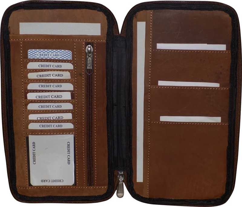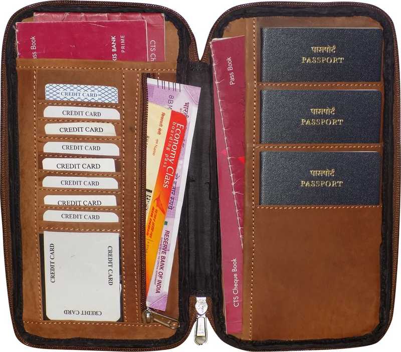 Style 98 presents Tan Travel Organiser Wallet, exclusively designed for Men and Women to carry their Cards,Cash, Passport, Cheque Book,Pass Book and other valauables while on the move. This wallet has 5 compartments. This wallet is made up of Milled leather. This wallet has Zipper Closure. This Travel wallet has a flap with zipper pocket and card slots. The Left Fold has a transparent pocket to keep the chequebooks,passbooks and other documents. The Right fold has 4 Slots to keep Passport, driving License and other ID'S. This wallet has 5 hidden Pockets. This wallet would be the perfect pick if you are on roaming.