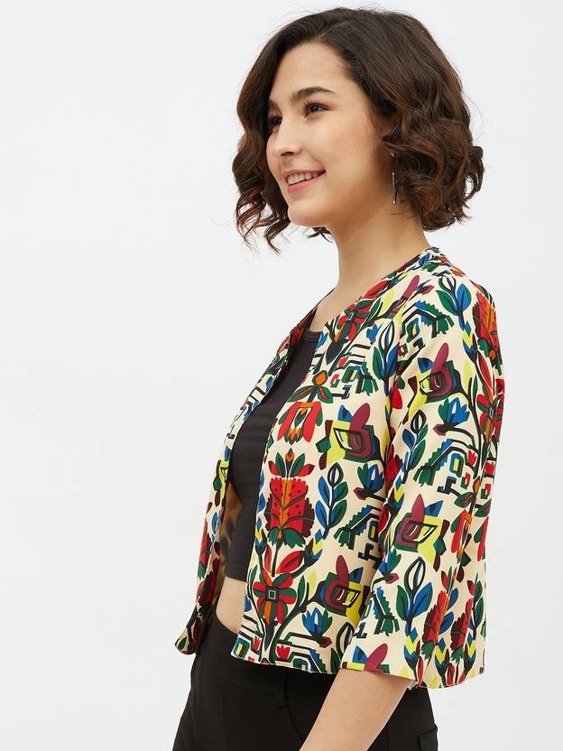 StyleStone Women's Polyester Moss Floral Printed Open Shrug